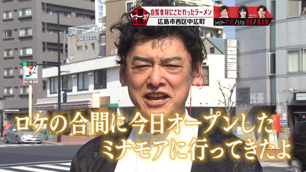 ロケの合間に広島駅の新駅ビル「ミナモア」に行ってきたと話すてつじ
