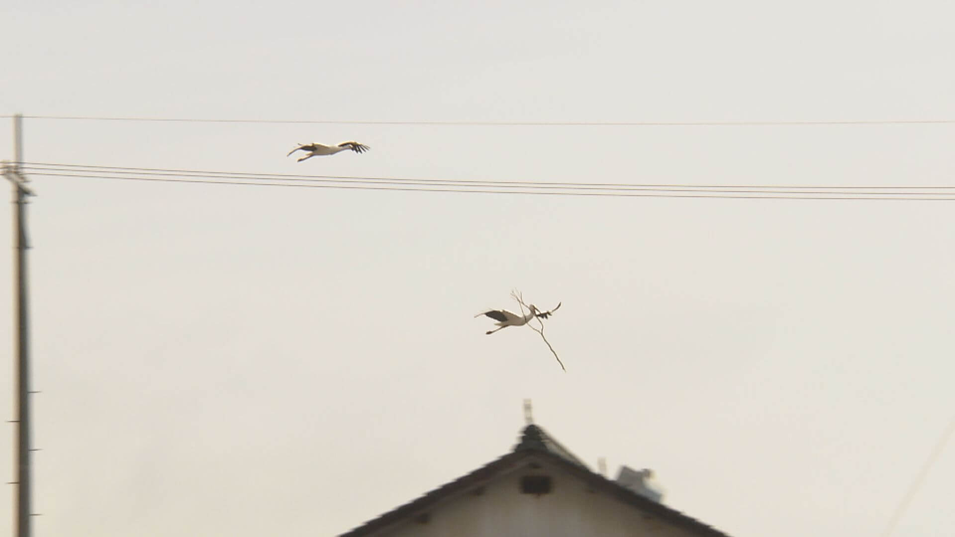 住民たちの思いをよそに、3年連続同じ電柱で巣を作り、繁殖をはじめたコウノトリのペア。