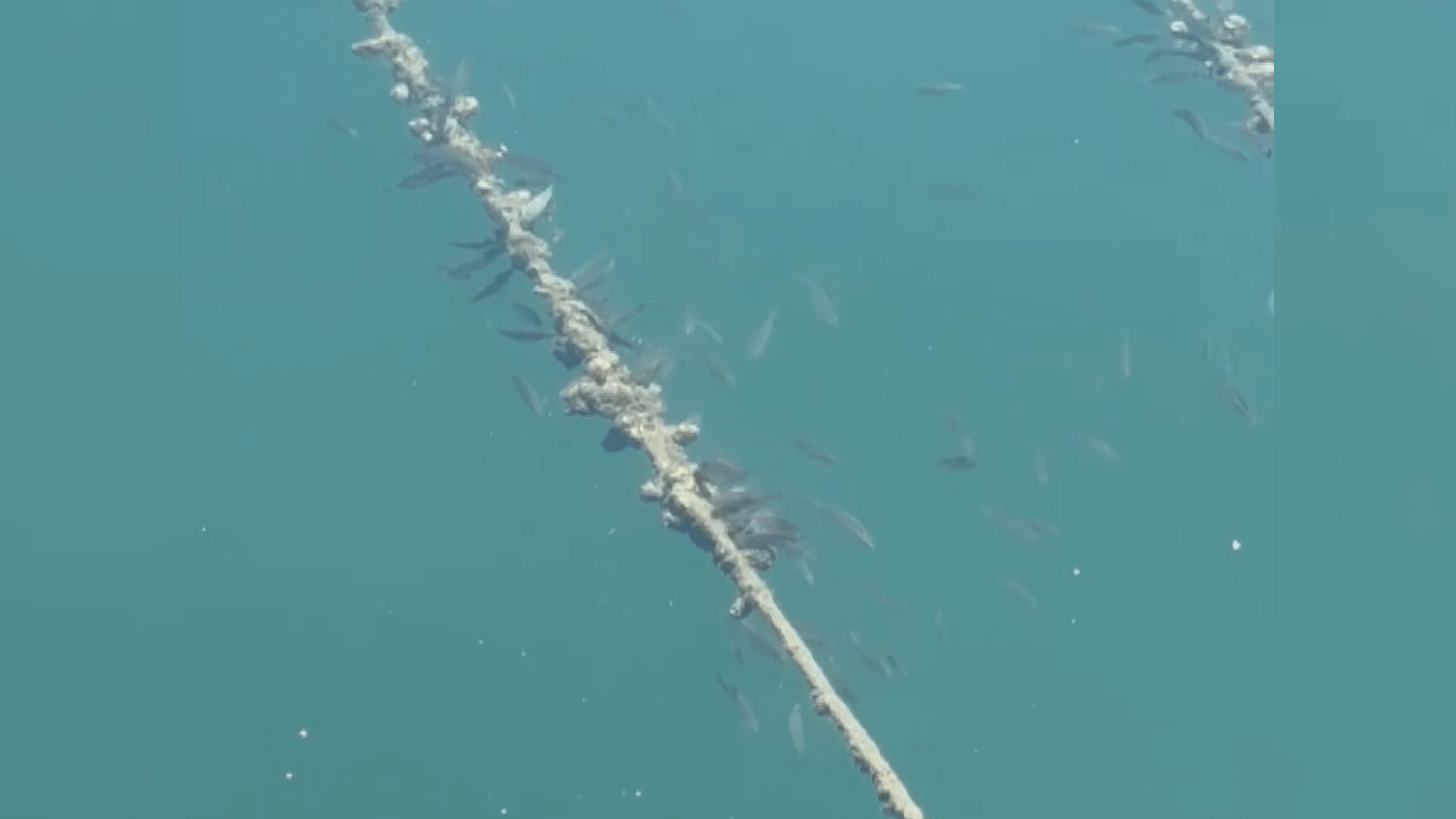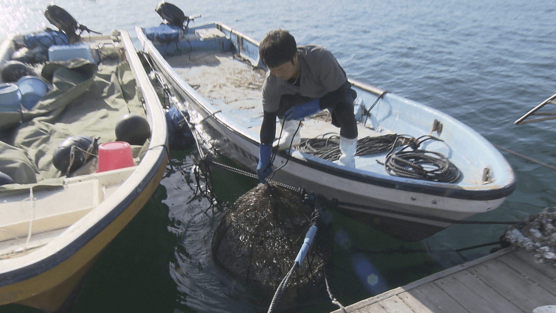 地元でのり養殖などを営むマルコ水産の営業部長・兼田寿敏さんは「ひどいところはロープがあるところのまわりに、何百匹も群がって食べています」と話します。