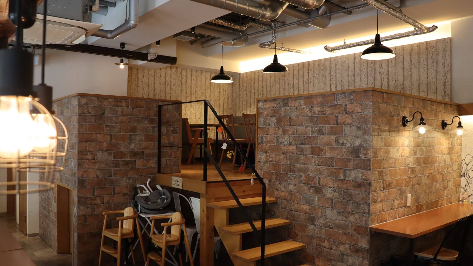 数段階段を上がった場所にあり、レンガのようなデザインの壁で囲まれているため、グループでも周りを気にせず過ごすことができそうです。