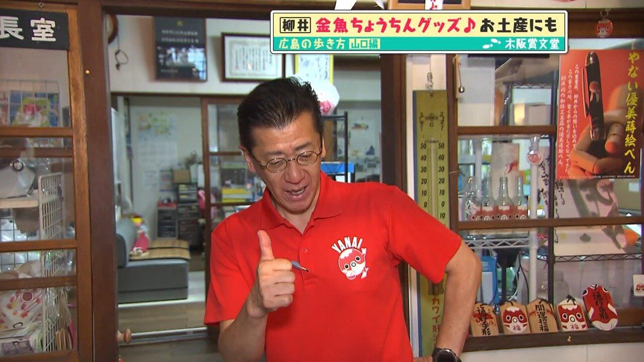 店主の木阪 泰之さんが着ているTシャツには、“やない~ね”ポーズをした金魚ちょうちんが描かれていて、とってもキャッチー。