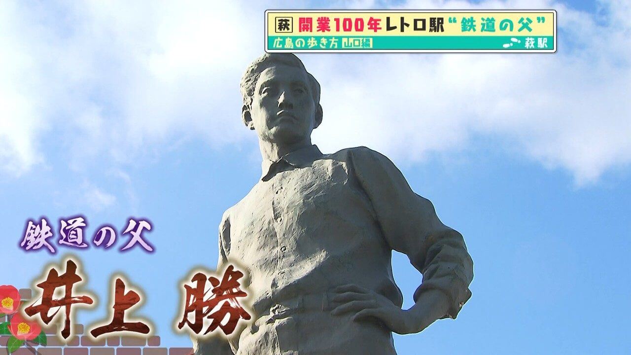 萩駅舎の前には、萩市出身で、“鉄道の父”と呼ばれた井上勝の像があります。