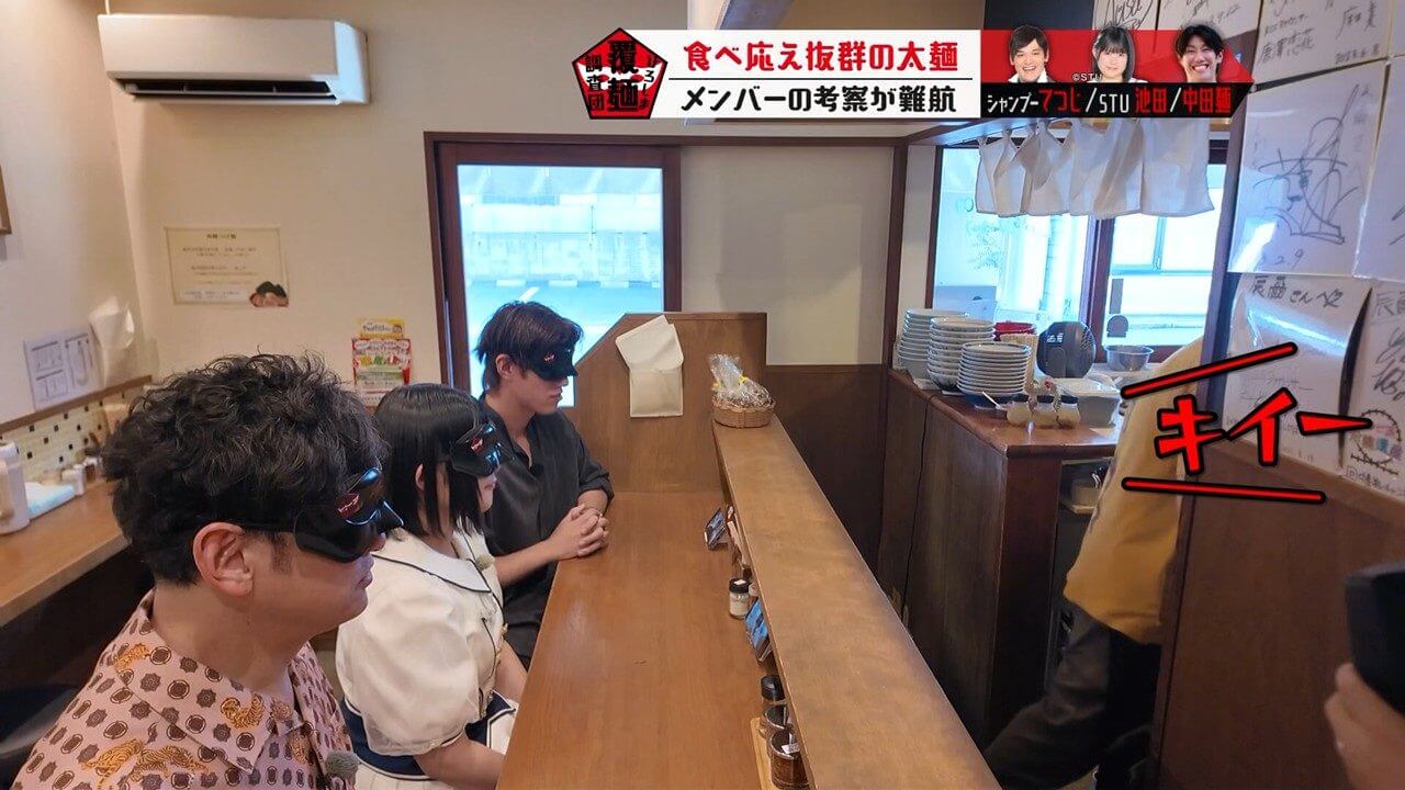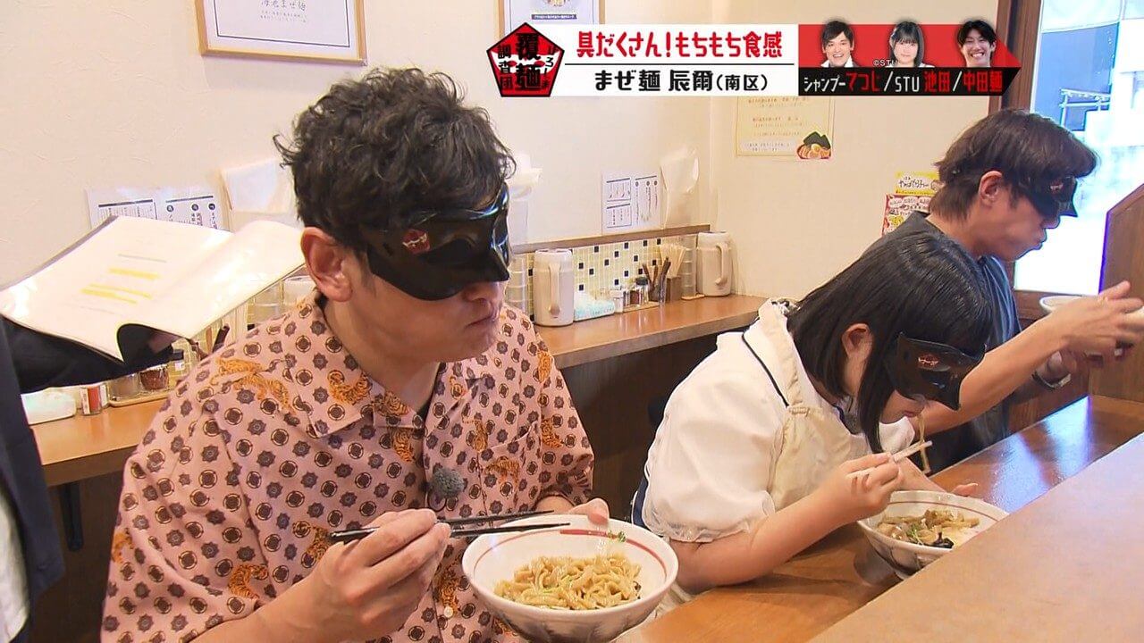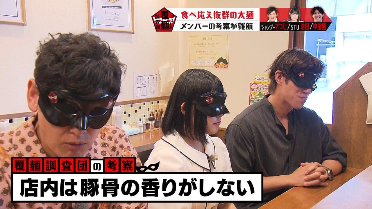 目隠し(通称:覆麺)をして感覚を研ぎ澄まし、至高の一杯を調査する「ひろしま覆麺調査団」。