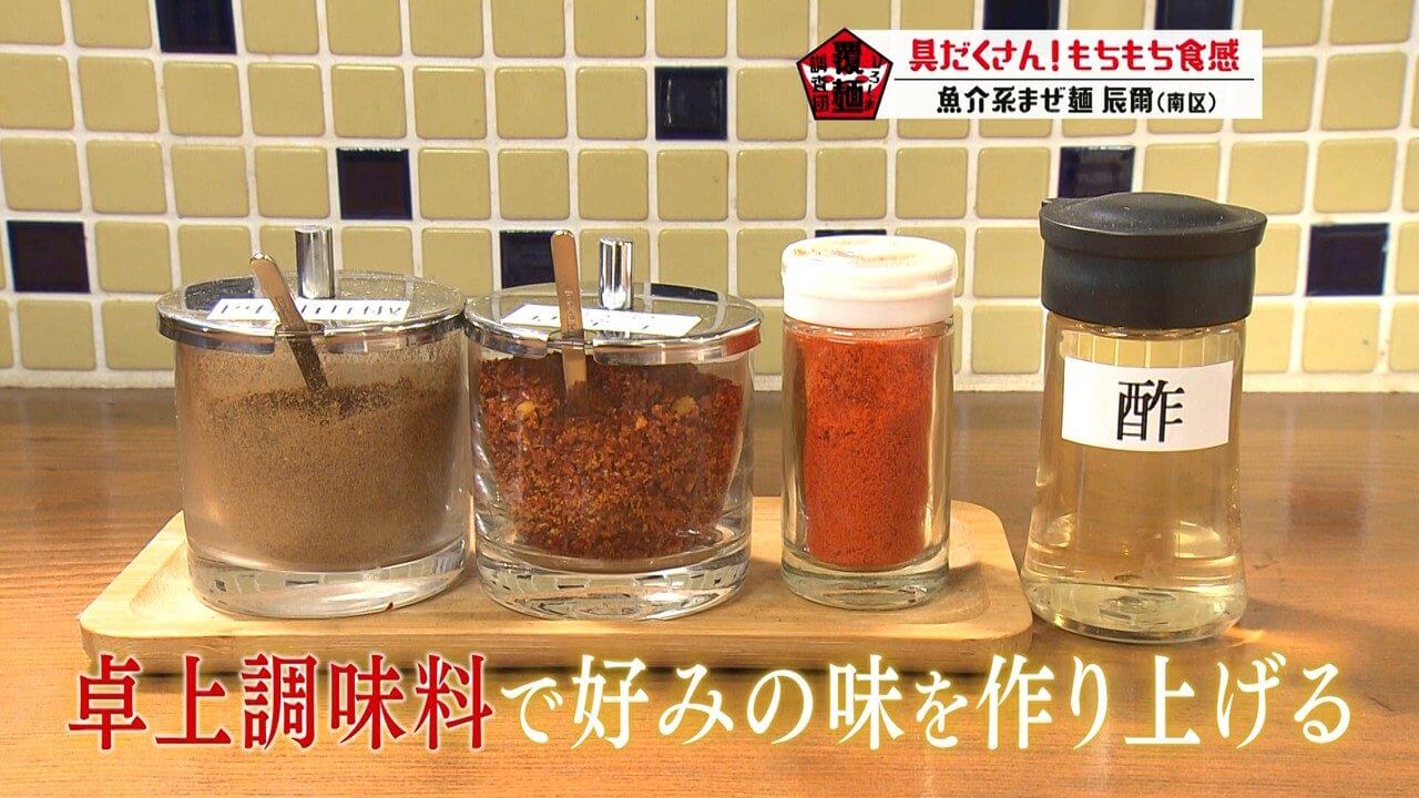 その先は卓上調味料で、お客さん自身が好みの味を作り上げるスタイルです。
