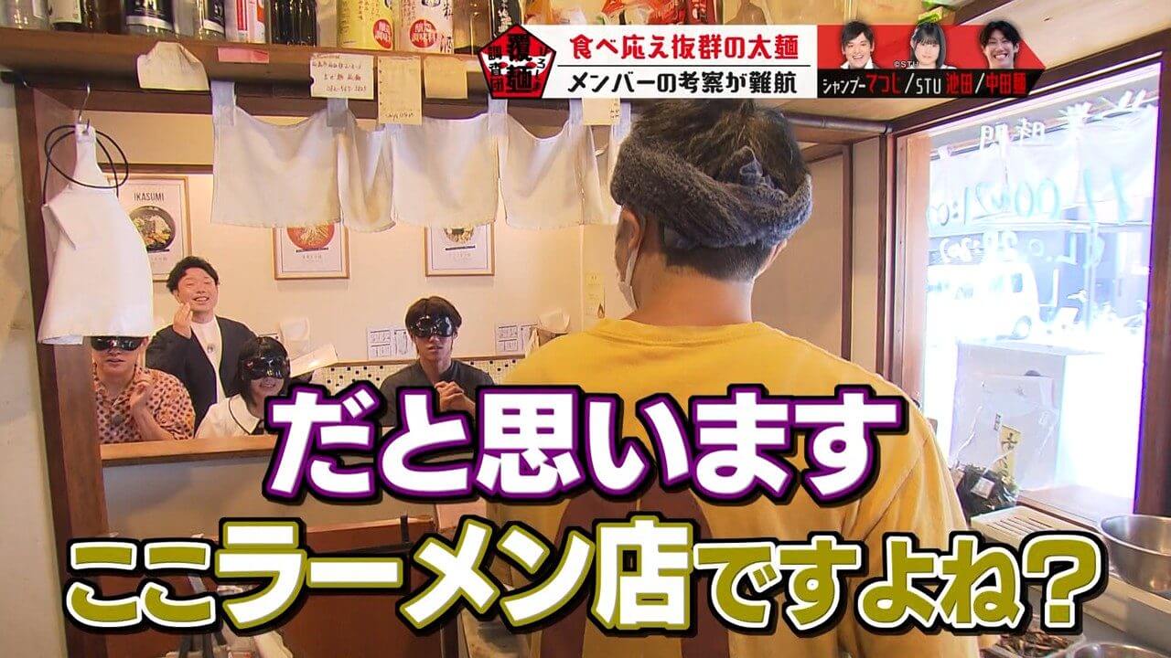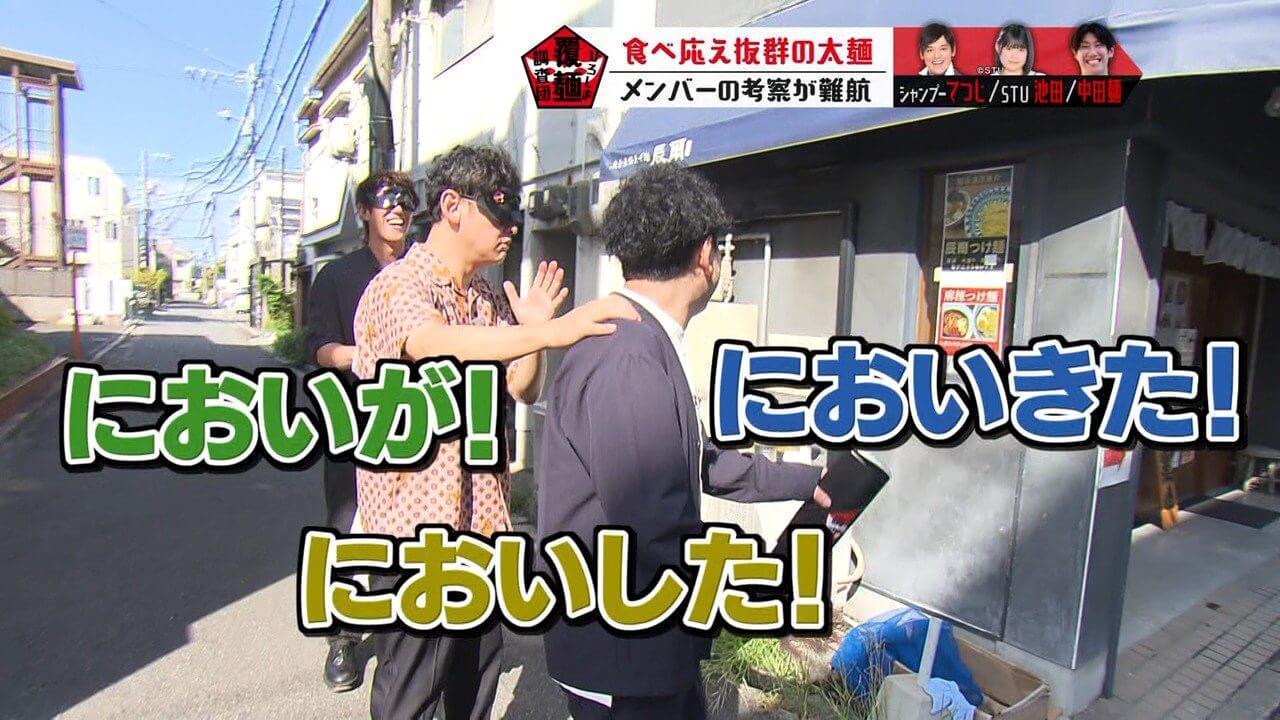 覆面をつけて歩くこと1分、左角を曲がろうとしたところで「においがした!」と声をそろえる麺バーたち。