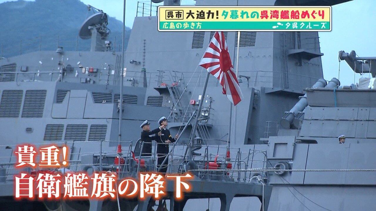 日の入り時刻に海上自衛隊艦船の自衛艦旗がおろされるという長年引き継がれている儀式です。