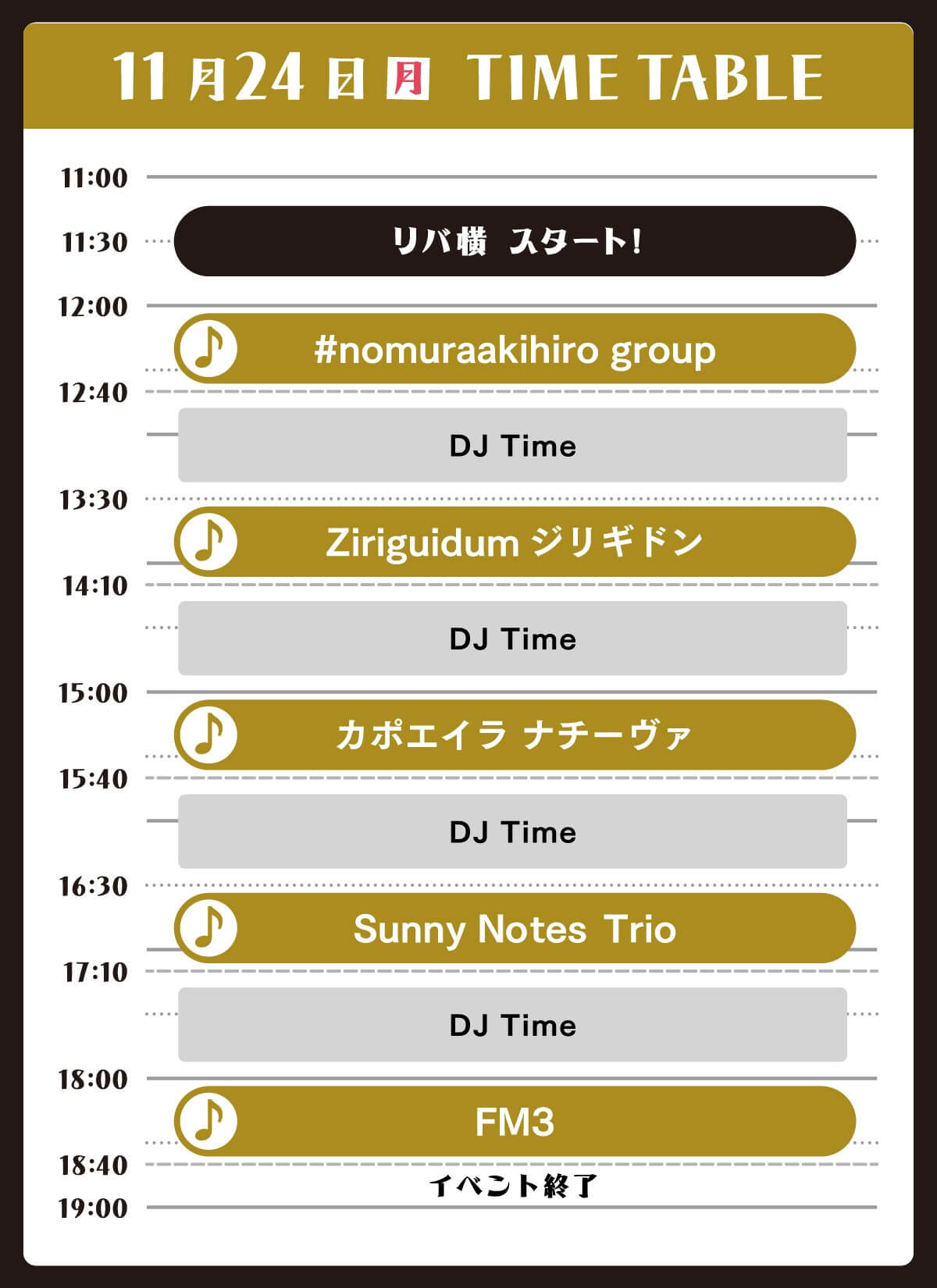 2025年11月24日(月・振休)11:00~19:00 ※雨天延期
