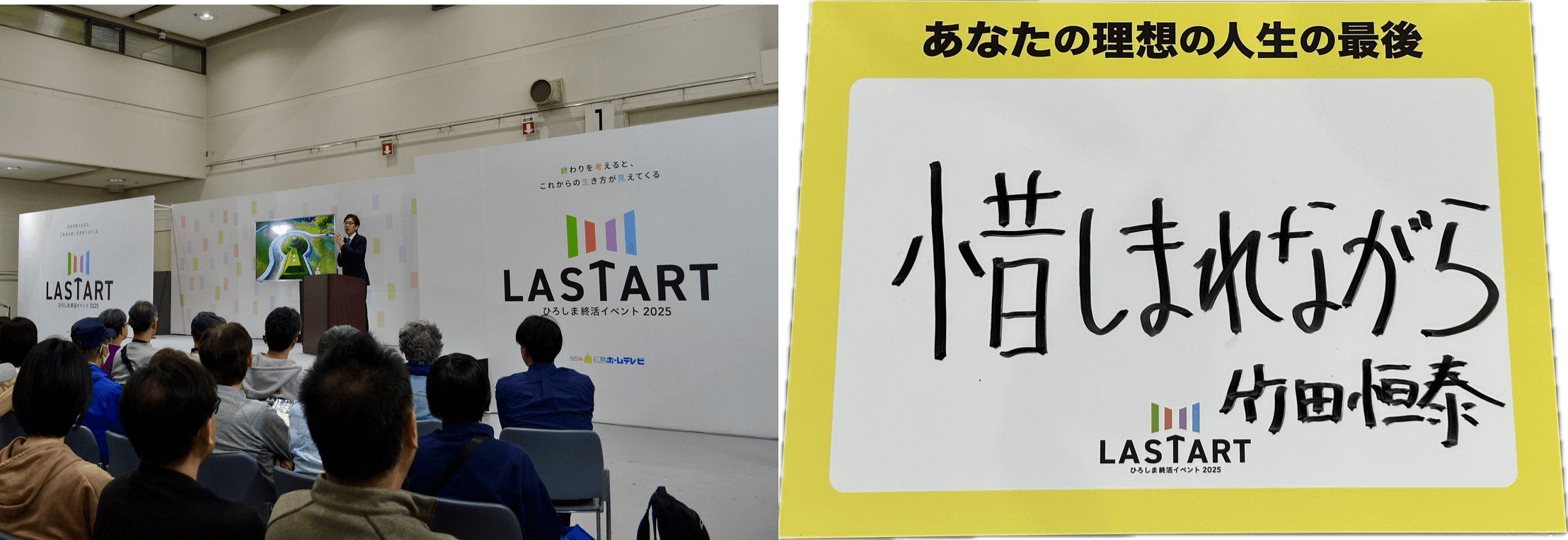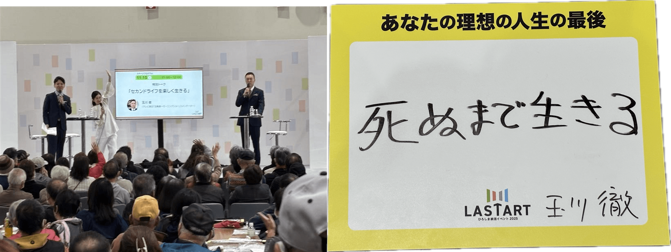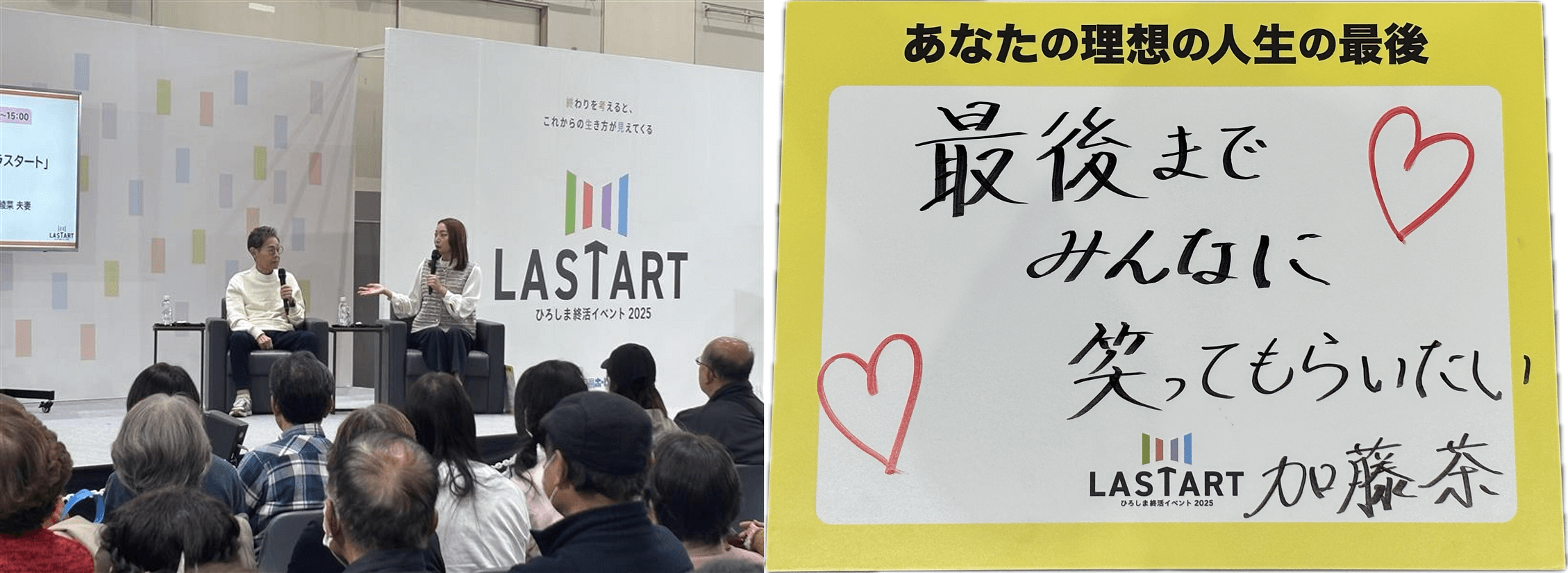 11月15日(土)・16日(日)に開催された「LASTARTひろしま終活イベント2025」では、ゲストのみなさんがそれぞれの価値観や人生観を語り、最後には“理想の人生の最後”を直筆ボードに書いて紹介する場面もありました。