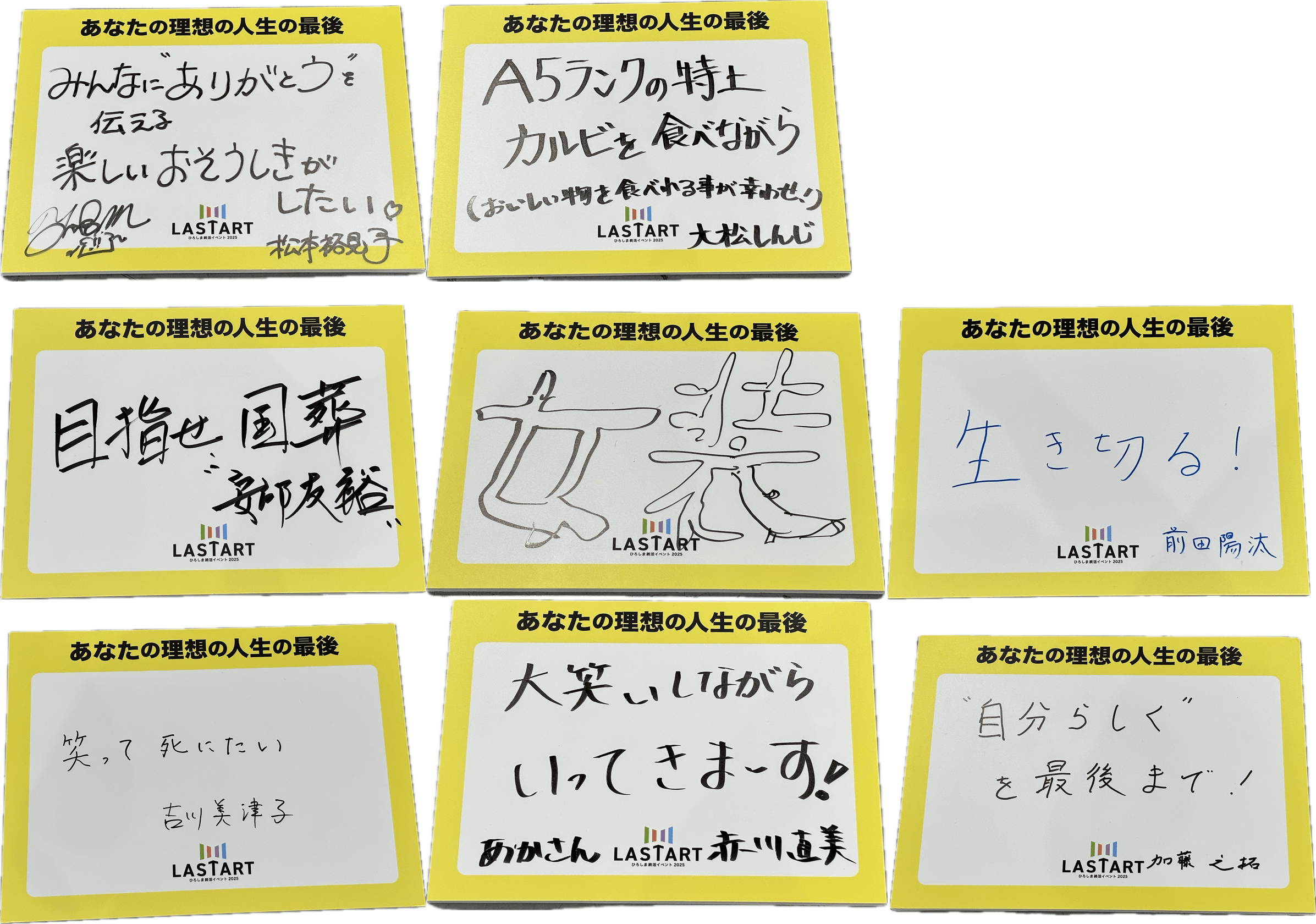 今回イベントに出演したゲストのみなさん全員に、“理想の人生の最後”をボードに書いていただきました。