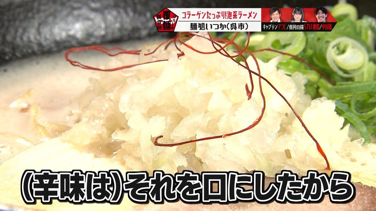 中田麺、正解!玉ねぎとは違う辛味を感じるようですが、その正体は糸唐辛子です