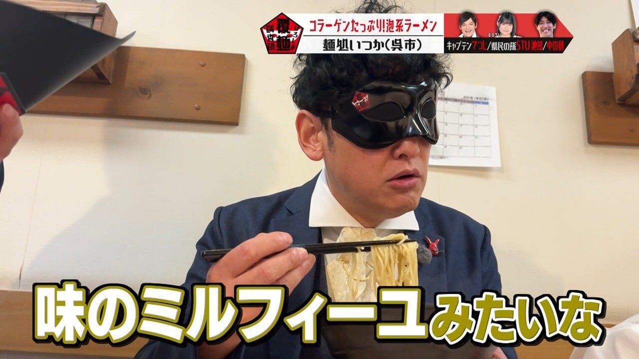 目隠し(通称:覆麺)をして感覚を研ぎ澄まし、至高の一杯を調査します。