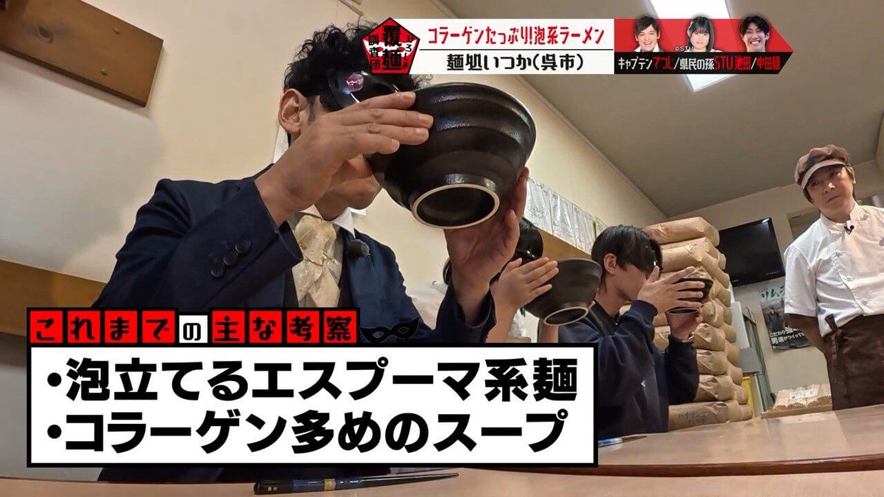 ロケの空き時間に映画『沈黙の艦隊』を見てきたてつじと、愛称が決まった池ちゃん、そして中田麺が、コラーゲンたっぷりの一杯を調査します。