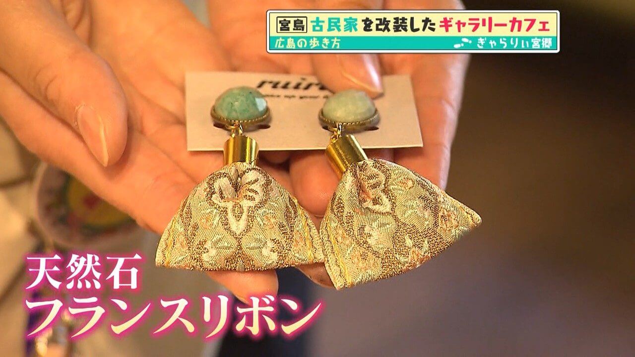 フランスリボンで作ったアクセサリー。天然石との組み合わせが上品