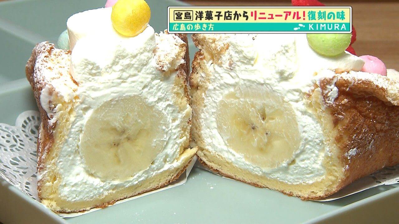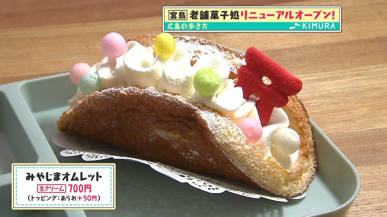 菓子処きむらの名物「洋菓子オムレット」に改良を重ねて復刻した「みやじまオムレット」をいただきました。