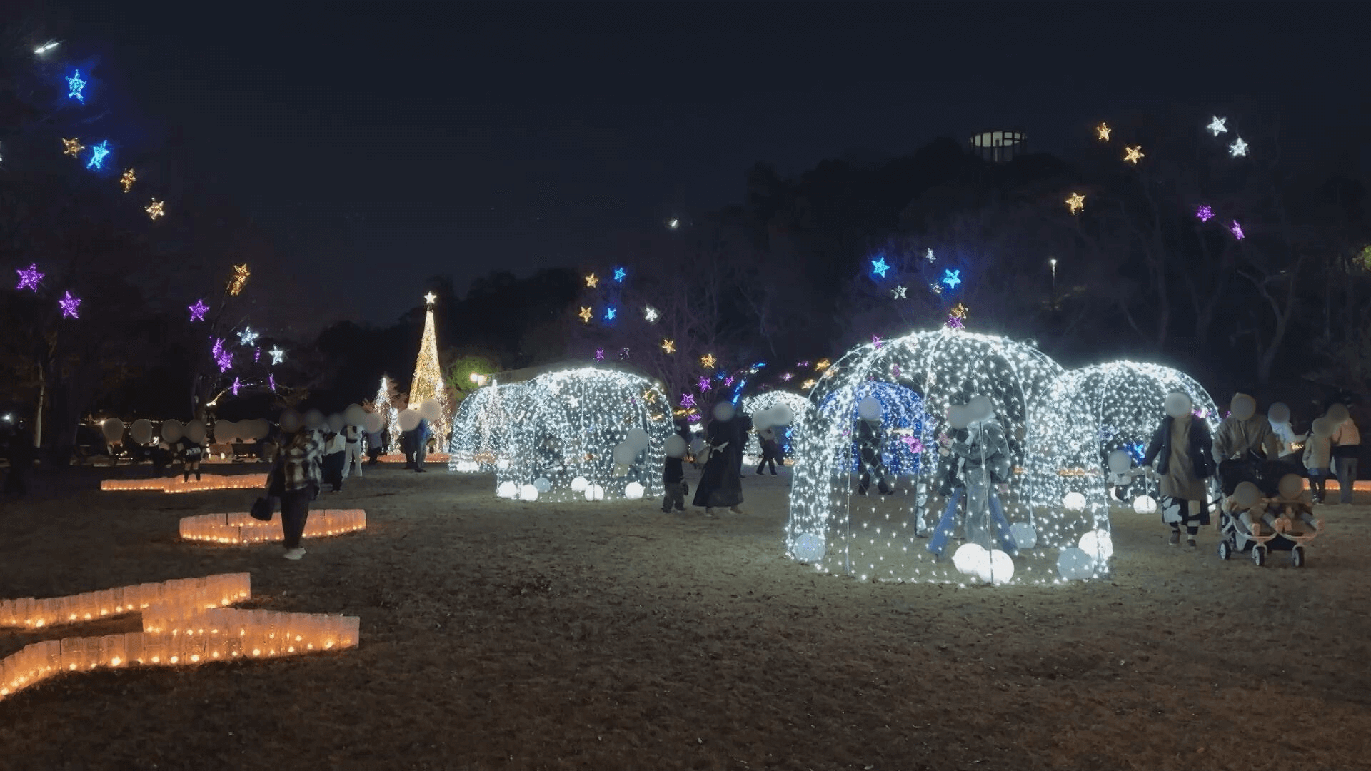 広島市佐伯区の広島市植物公園で土曜日に開催中の、花と光のページェントです。