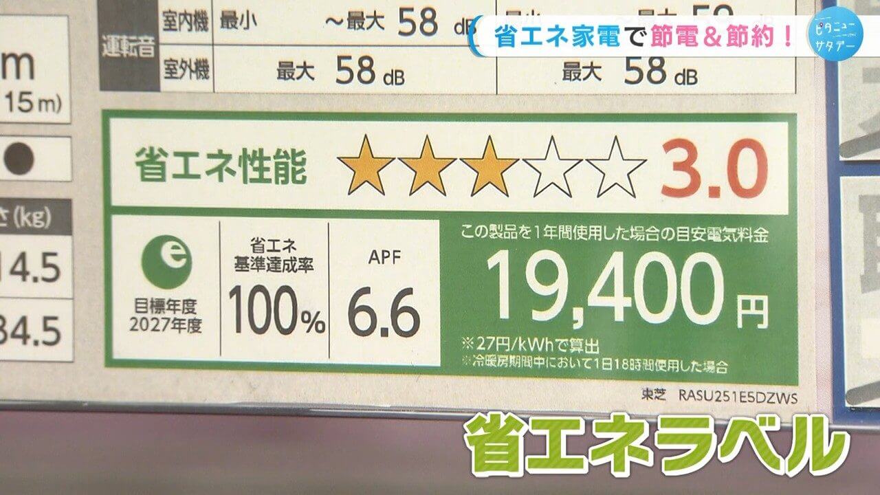 松永さん「展示商品には、プライスの横に省エネ性能などを比較できる『省エネラベル』を貼っています」
