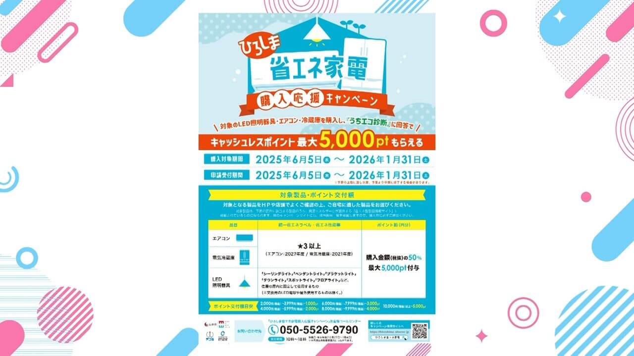 また広島県では、温室効果ガス排出削減の取り組みの一環として、『ひろしま省エネ家電購入応援キャンペーン』を行っています。