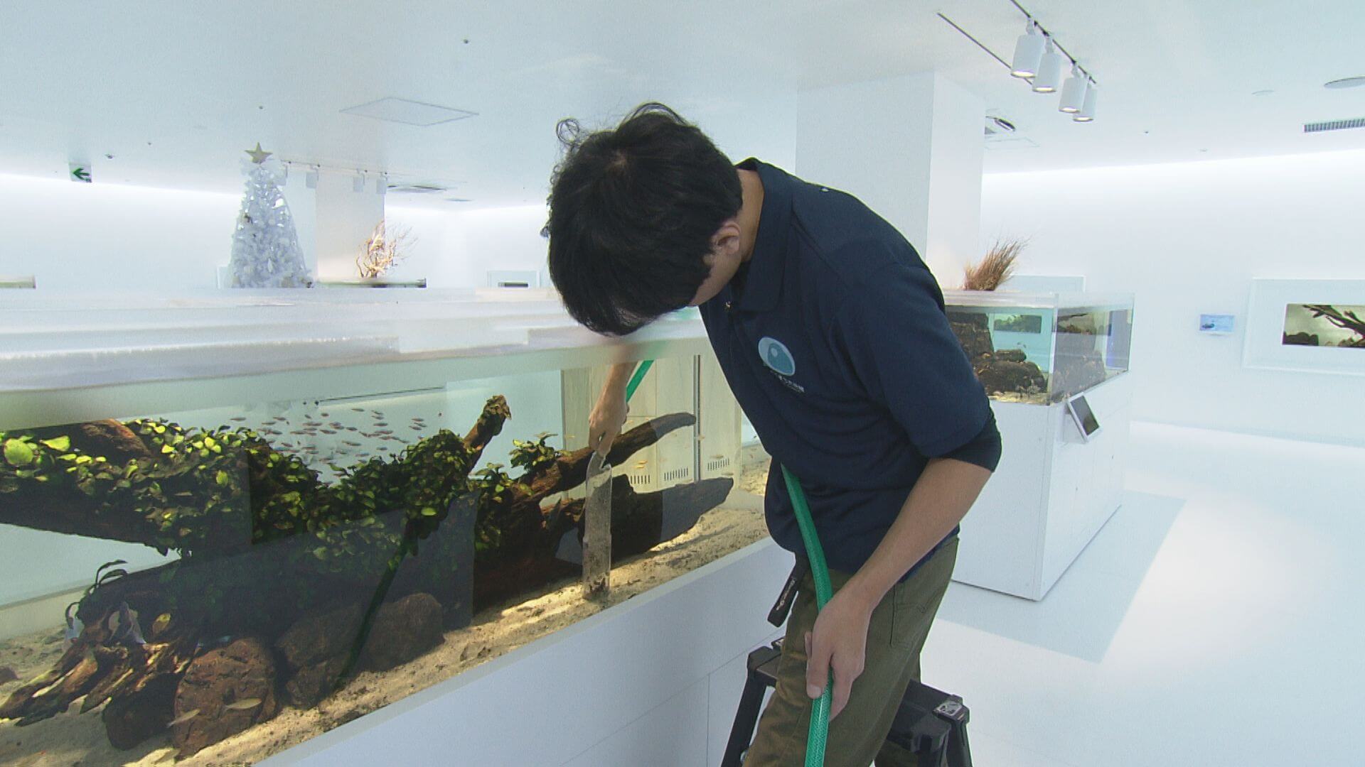 「違う視点で見てもらえる水槽なので、手間はかかるが頑張って展示できたらいい水槽になると思う」と話します。