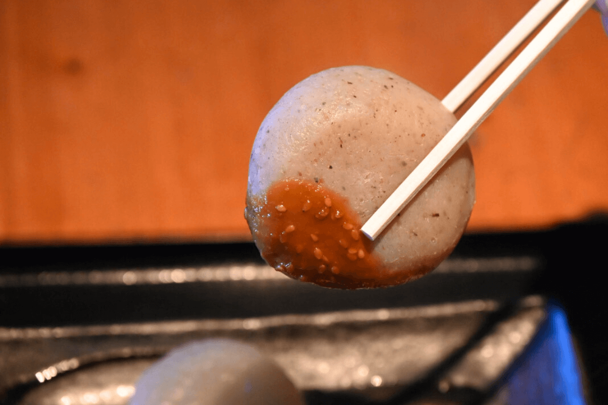 こんにゃく店から仕入れた生芋こんにゃくは、噛み応えのある食感で味の染み具合が良いのが魅力。かかっているのは、特製みそダレです。