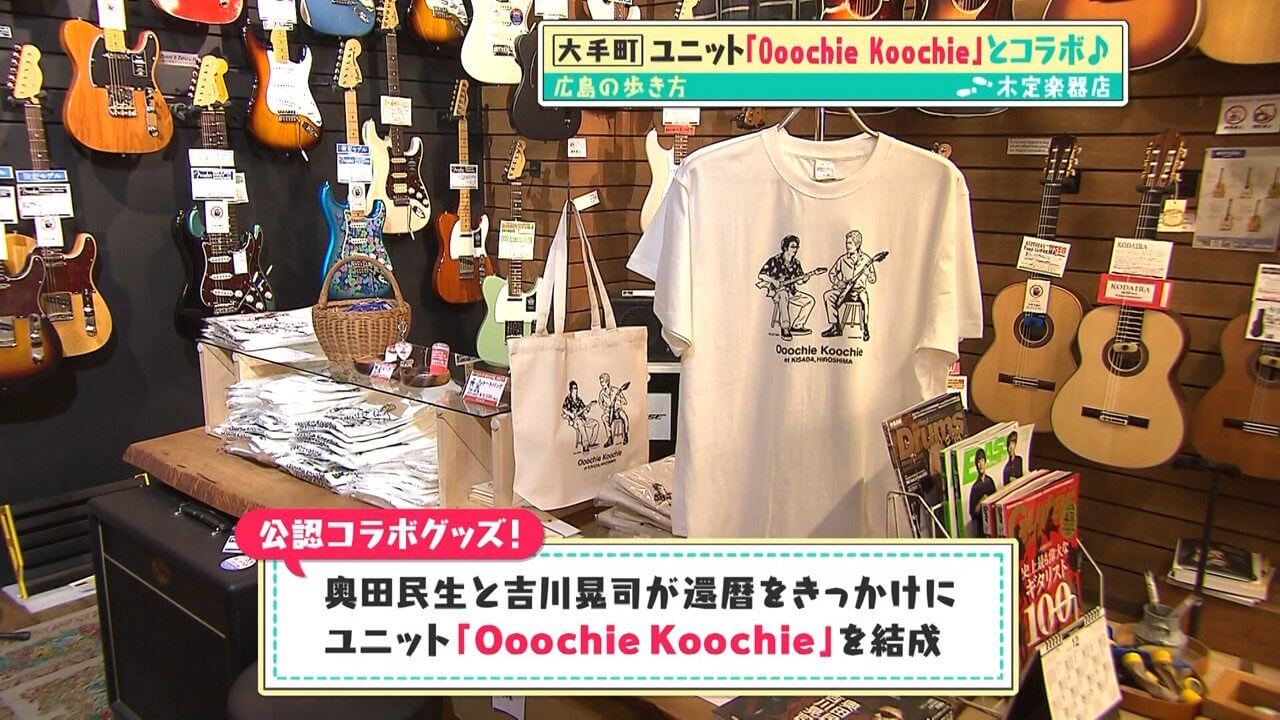 店内を案内してくれた浜本 剛さんが着ているのは、奥田民生さんと吉川晃司さんのユニット「Ooochie Koochie」の公認コラボTシャツ。