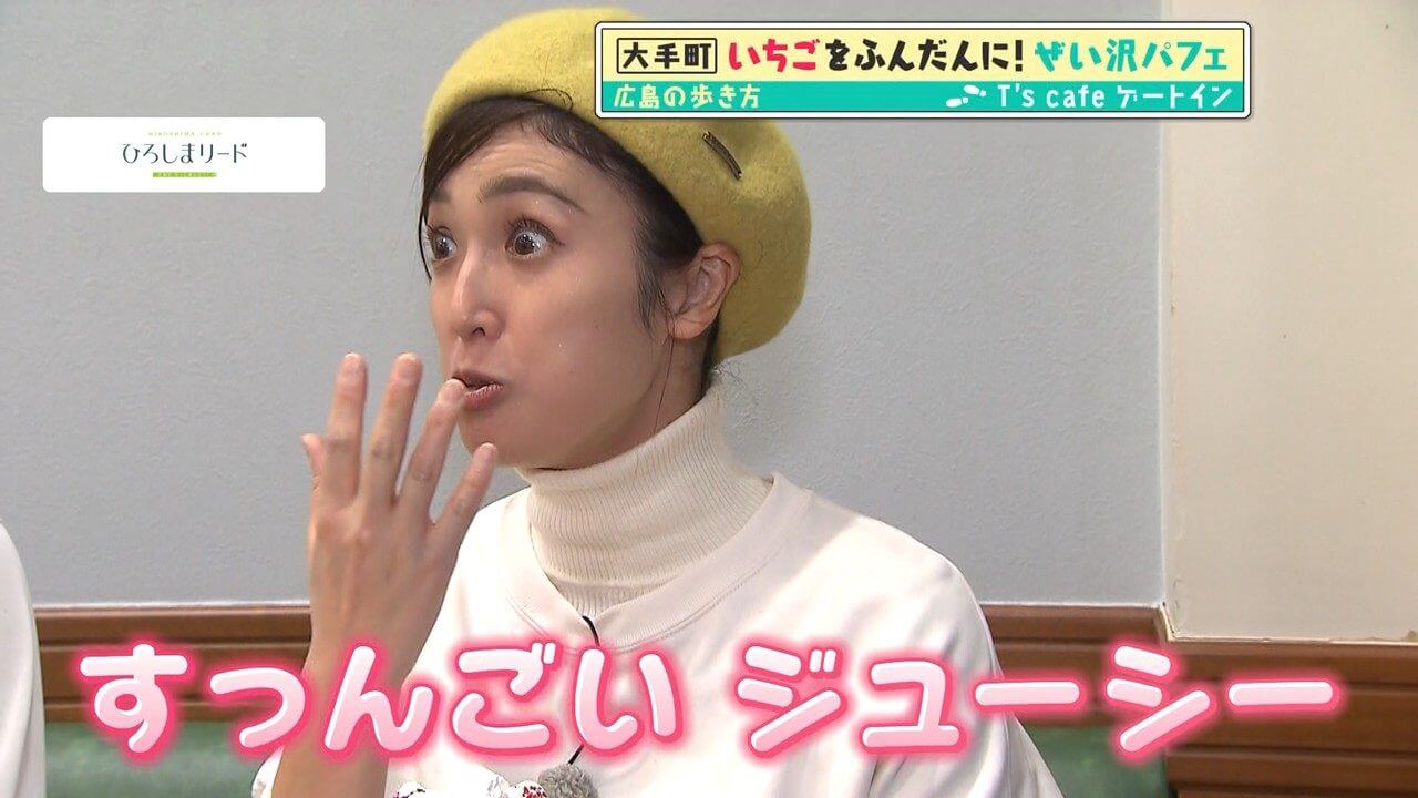 いちごのジューシーさに驚く小嶋アナ。「噛んだ瞬間に果汁があふれ出す!」と感動。
