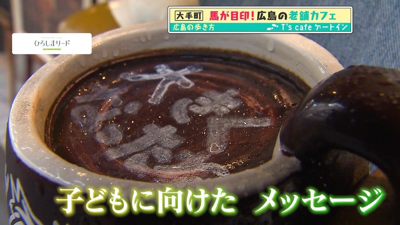 馬が持っているカップには“大きくなったね”の文字が。小さかった子どもが大きくなったときに見えるようになる仕掛けです