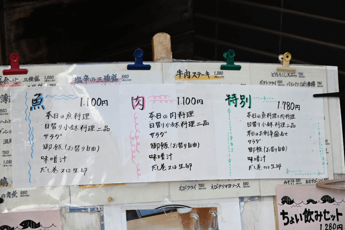 日替わりの魚料理には、今回いただいたフライ以外にも煮つけや焼き魚、南蛮漬けなどが用意されているそうです。