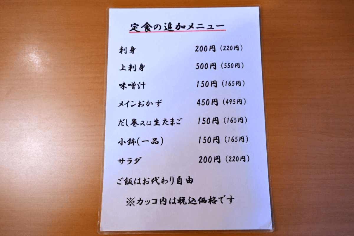 また、定食についている刺身や小鉢は、それぞれ追加で注文できます。