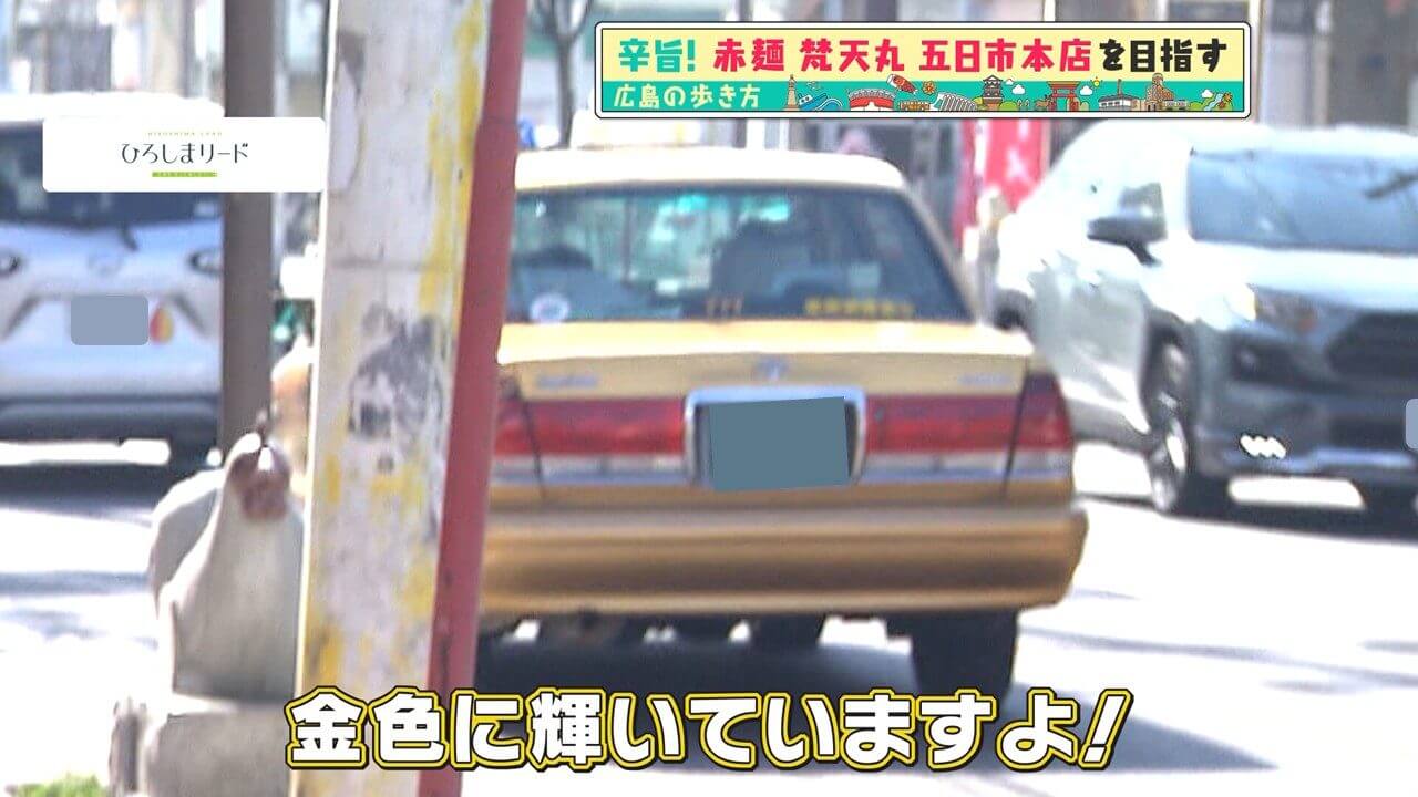 金色に輝く「金持タクシー」を発見し、「いいことがありそう!」と気持ちが高まります。