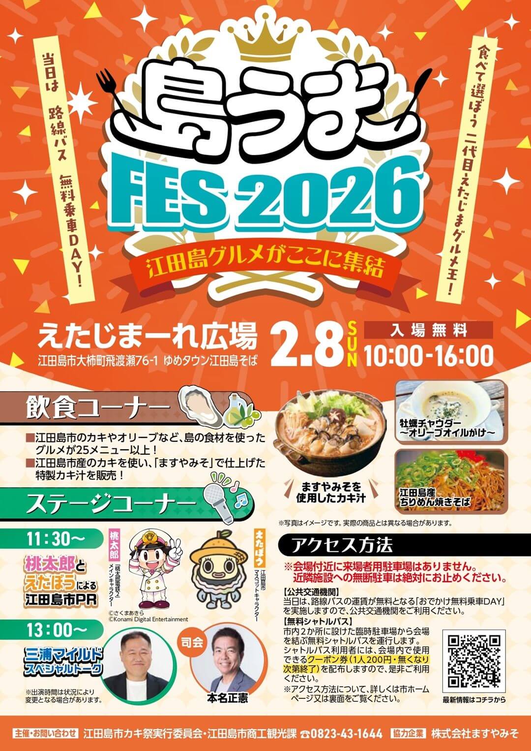 2026年2月8日(日)、広島県江田島市のえたじまーれ広場(ゆめタウン江田島そば)を会場に「島うまFES2026」が開催されます。