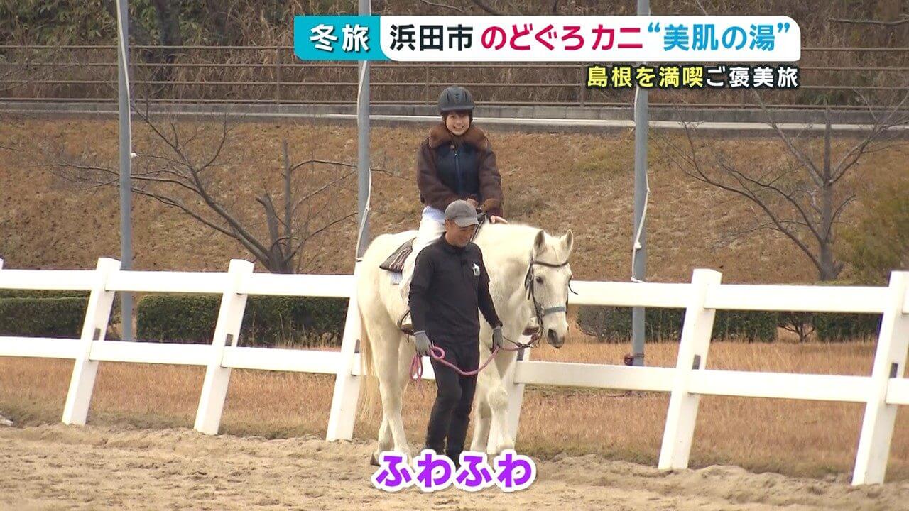 高田リポーター「高い!心地よい揺れですね。あっ、たてがみはふわふわなんだ!かわいい~!」