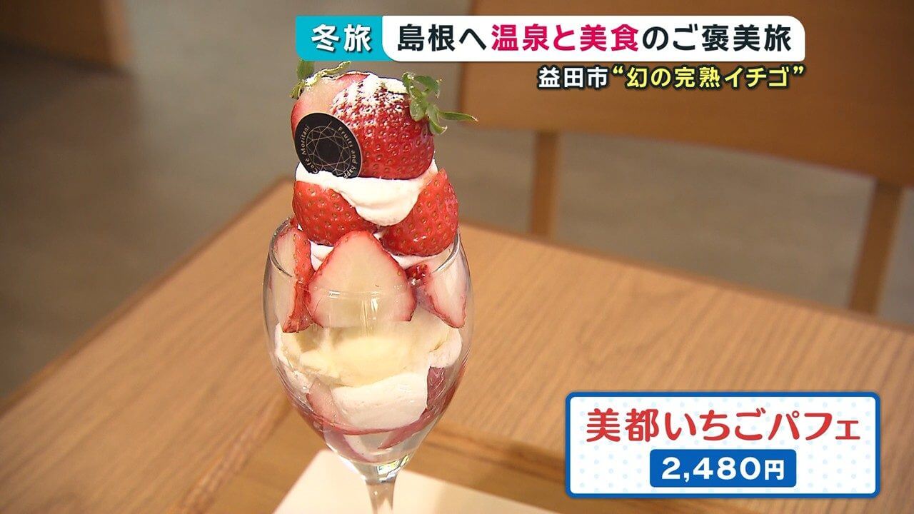 ここで人気なのが、 益田市産の「美都いちご」を使用した「美都いちごパフェ」(2,480円)です。