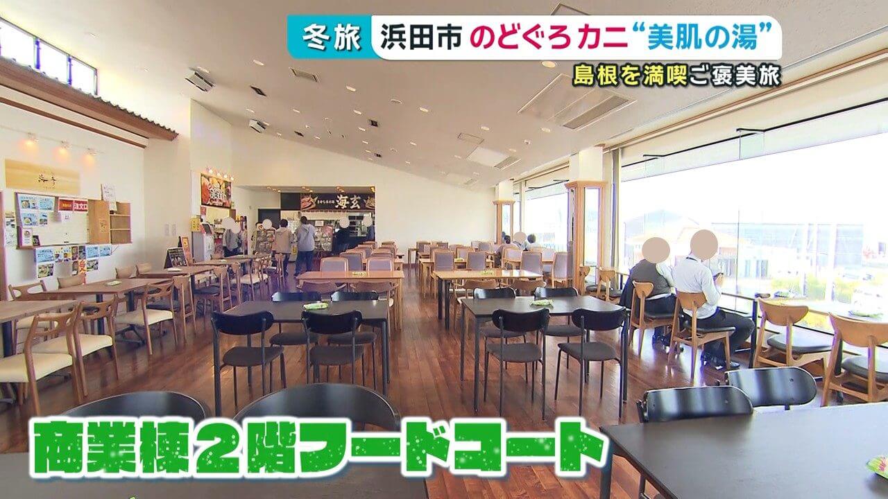 隣の商業棟2階にはフードコートがあり、市場のお魚を使った定食が人気。