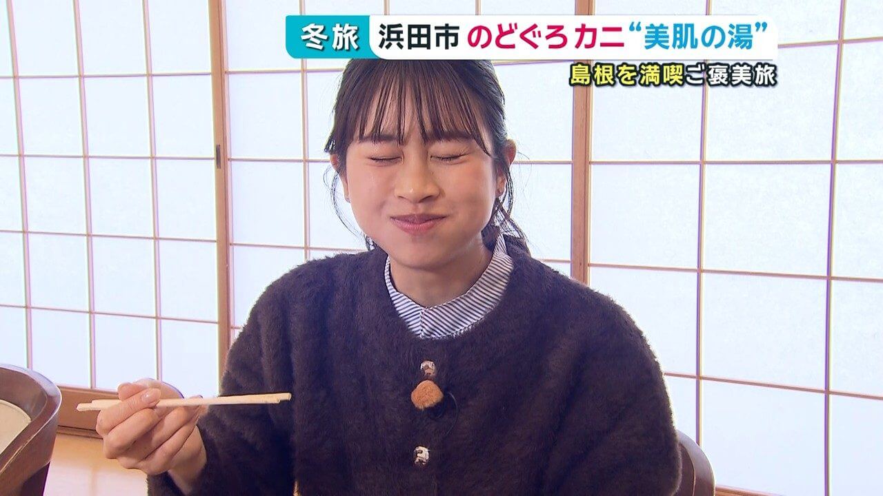 高田リポーター「香りが濃くて、身がギュッとしています。そしてカニ鍋のお出汁にはカニの甘みが全部出ています!」