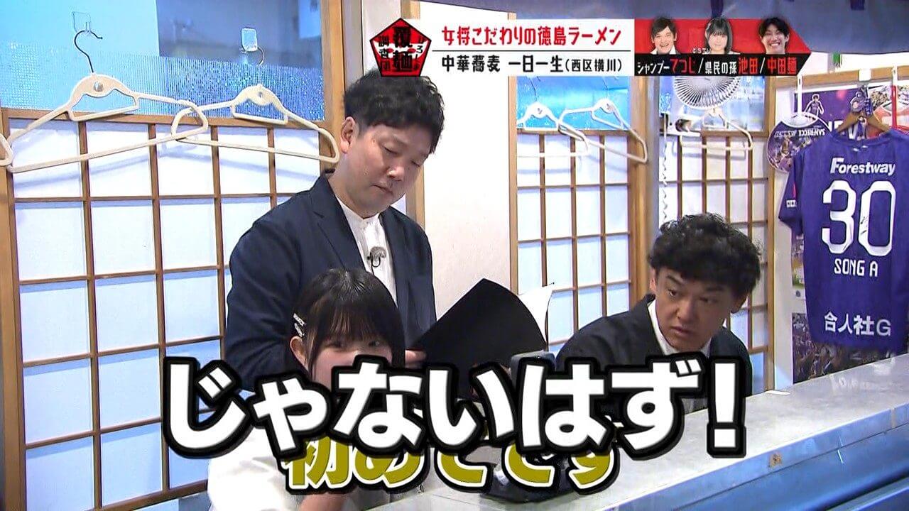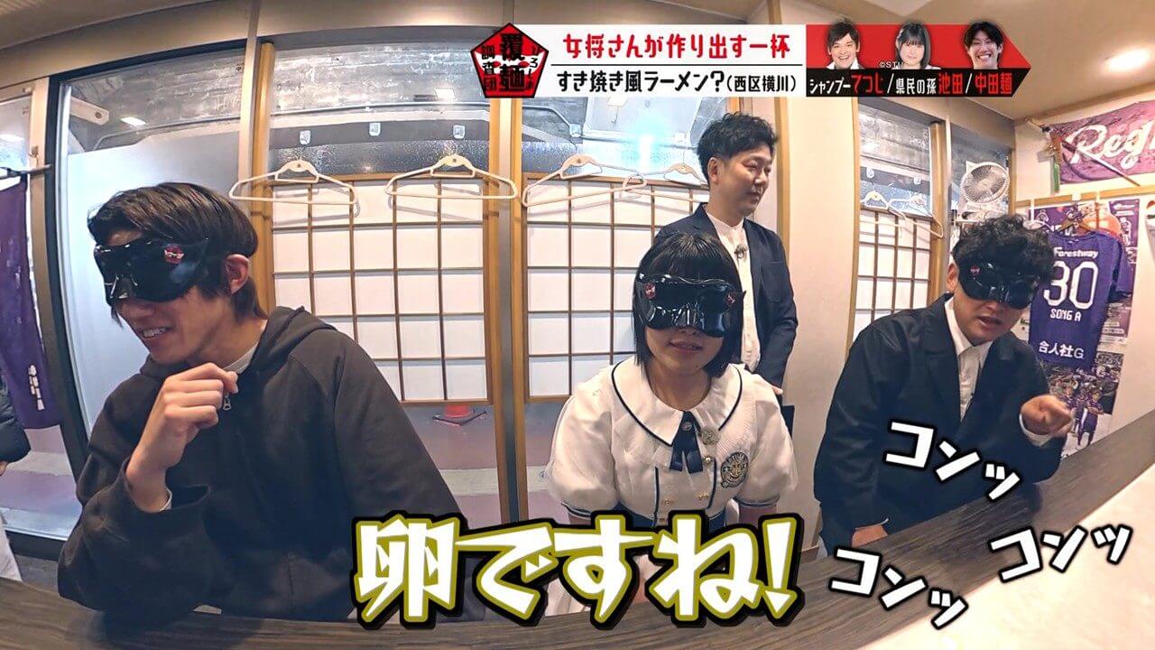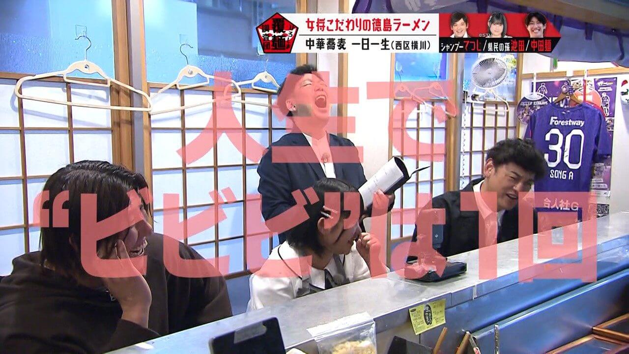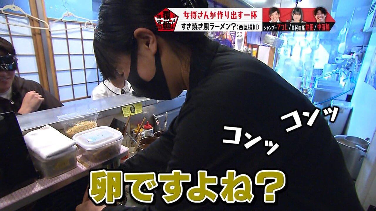 生卵が入っている可能性があると聞き、驚く池ちゃんと中田麺。生卵が入った一杯はこれまで調査していません