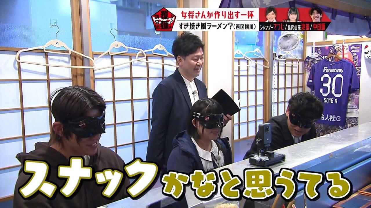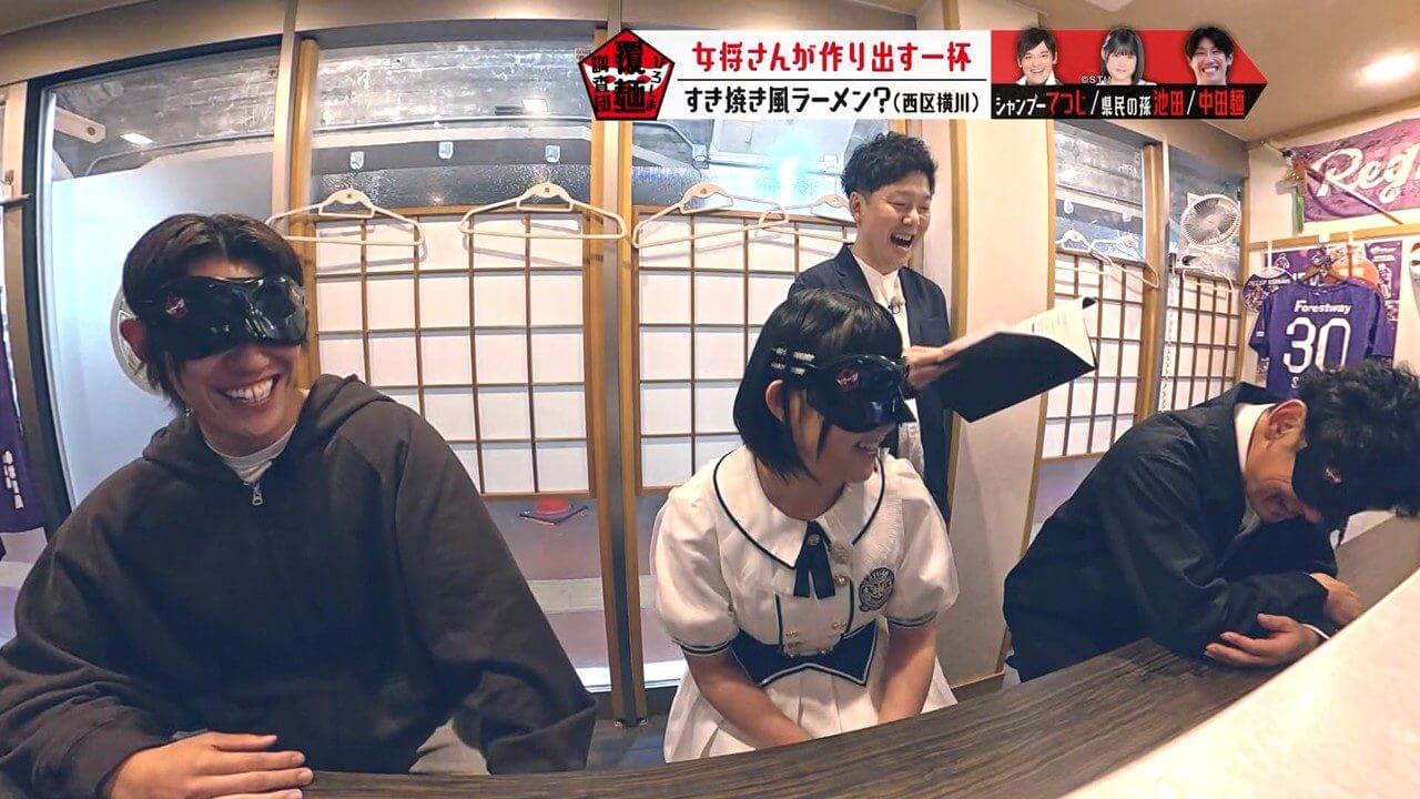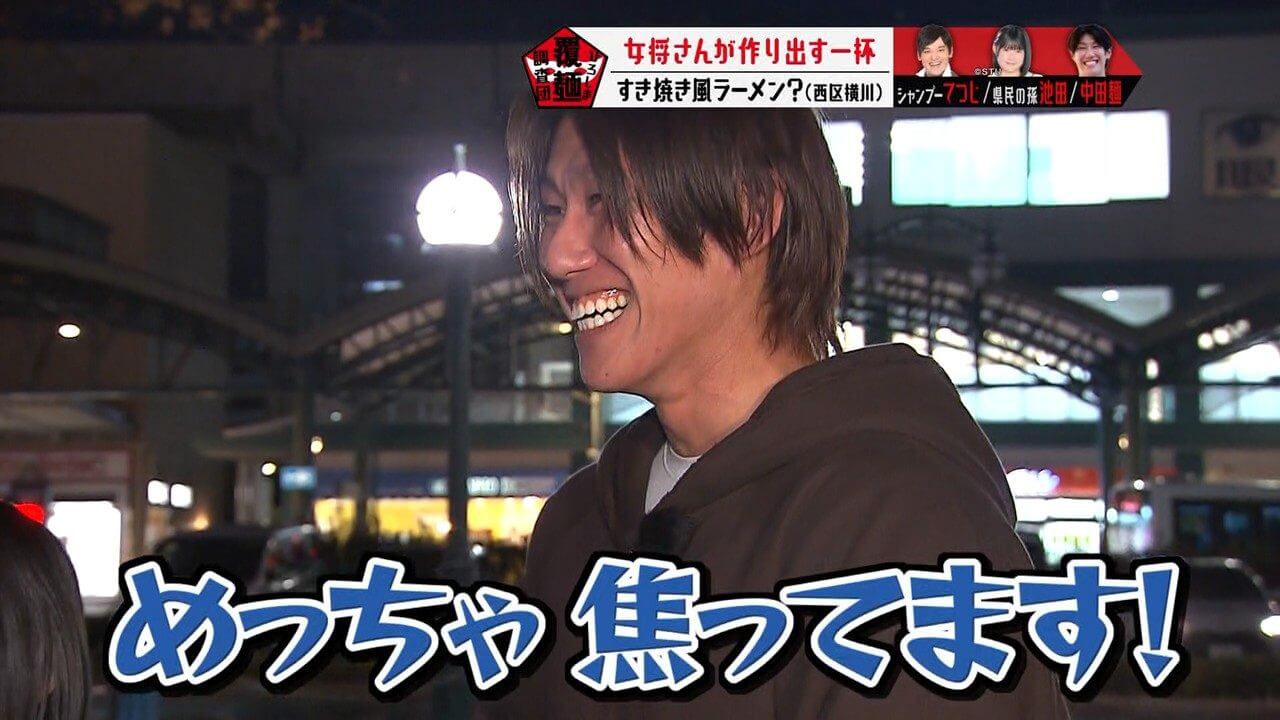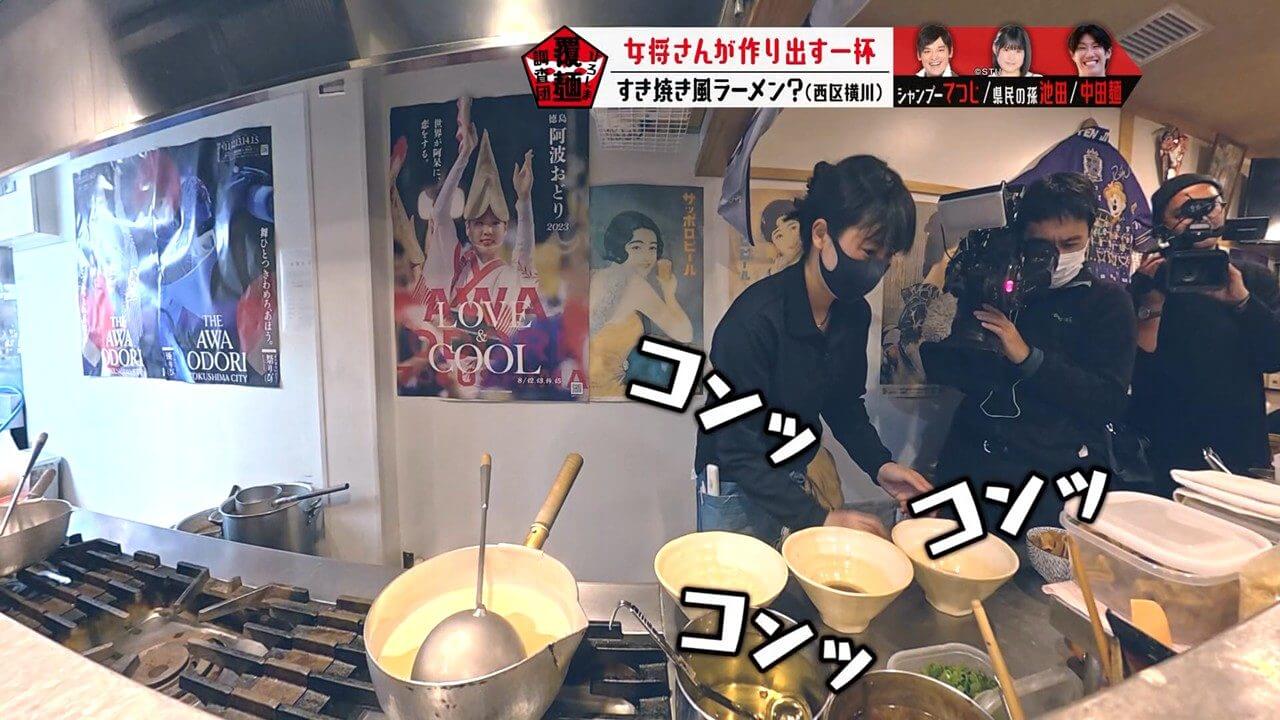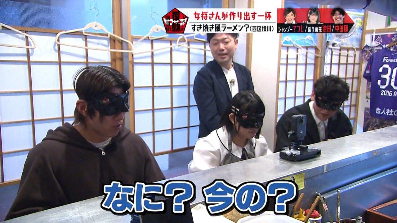 生卵が入っている可能性があると聞き、驚く池ちゃんと中田麺。生卵が入った一杯はこれまで調査していません