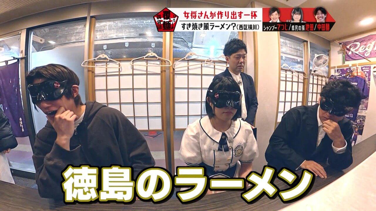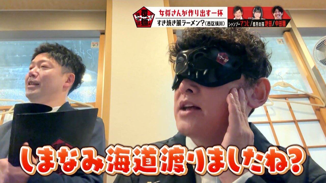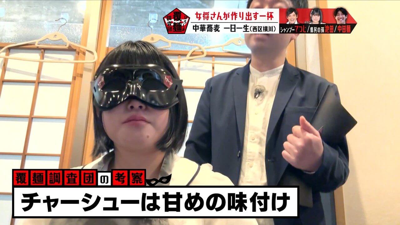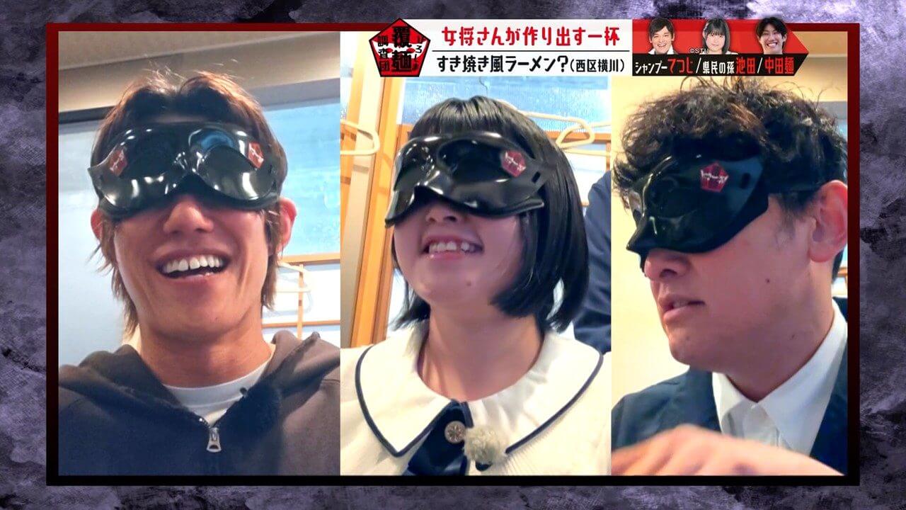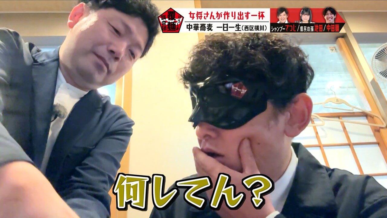 目隠し(通称:覆麺)をして感覚を研ぎ澄まし、至高の一杯を調査します。