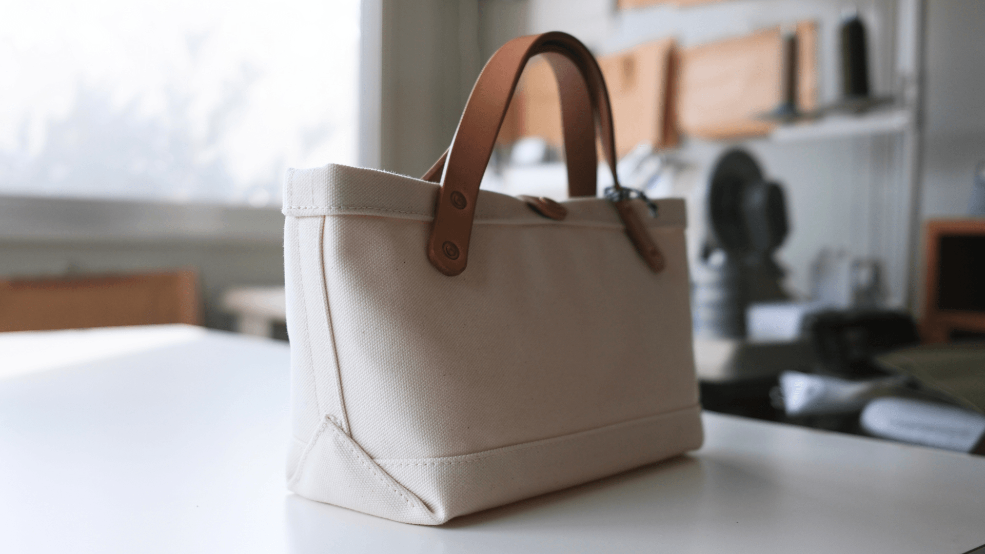 一番人気のトートバッグは、革や金具がざっくりとした帆布の質感を引き立てています。