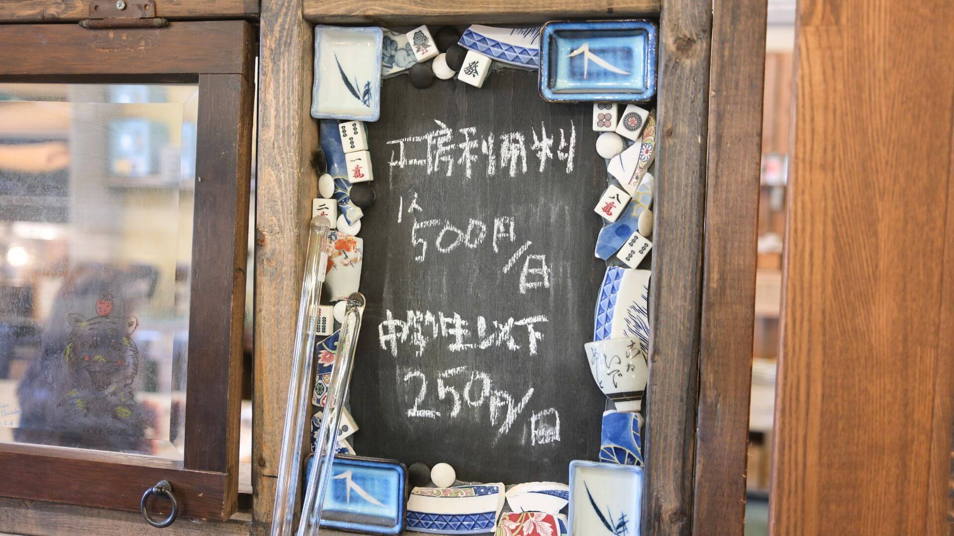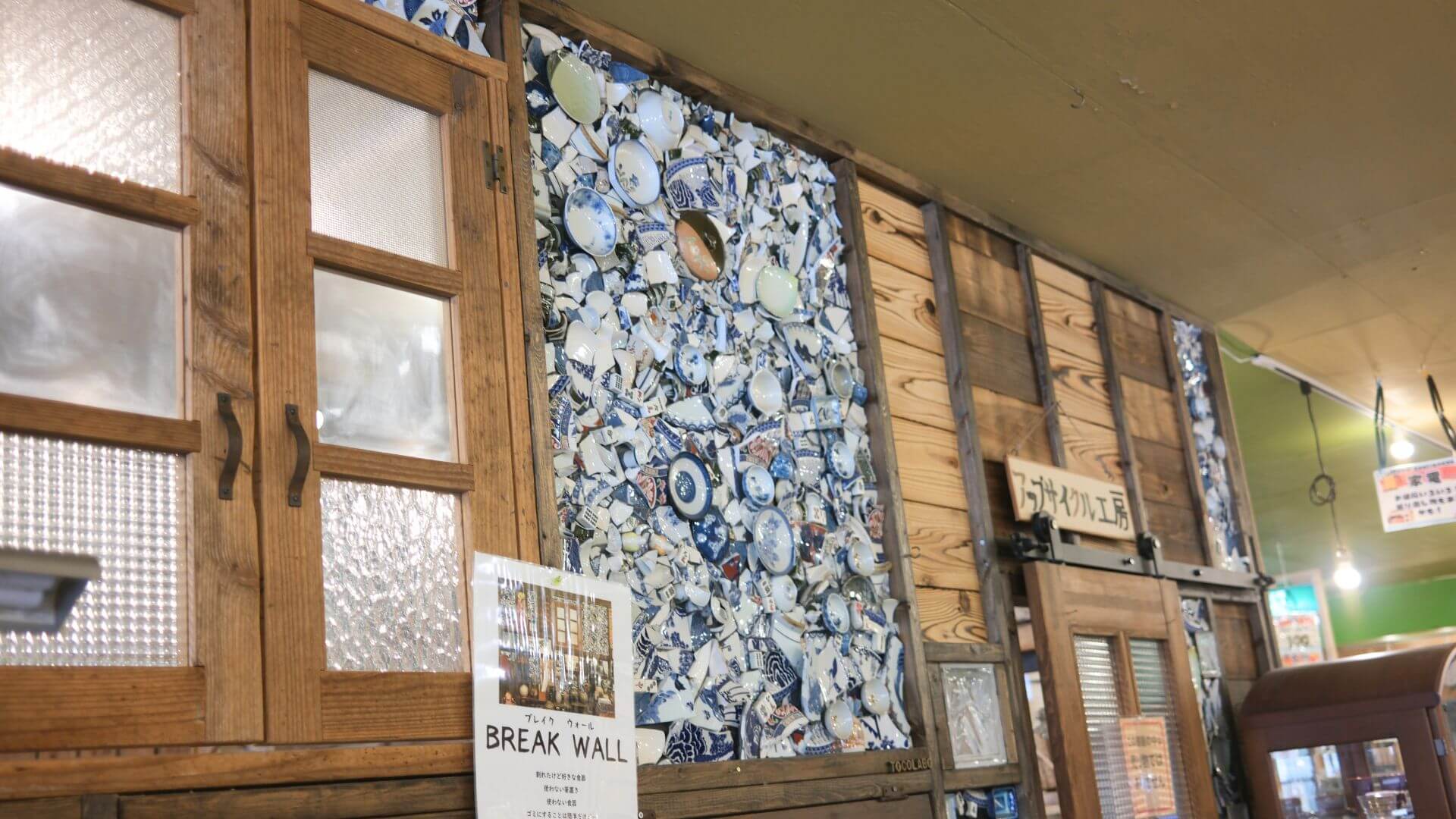 陶器のかけらが飾られた壁「ブレイクウォール」には、あちこちにマージャンパイが隠れています。