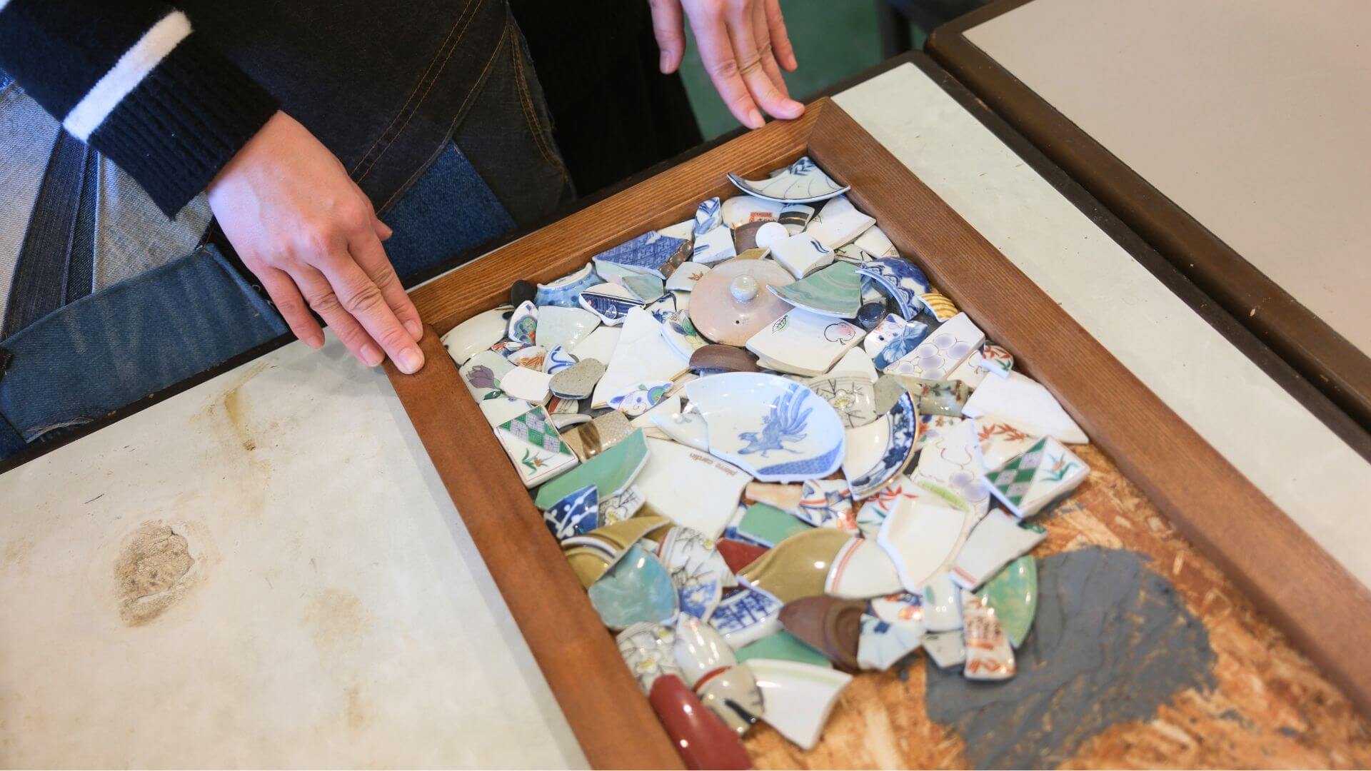 割れてしまったお気に入りのお皿や、使わなくなった箸置きやおもちゃなどがある場合は、絵画のようにフレームに敷き詰めても素敵な作品になります。