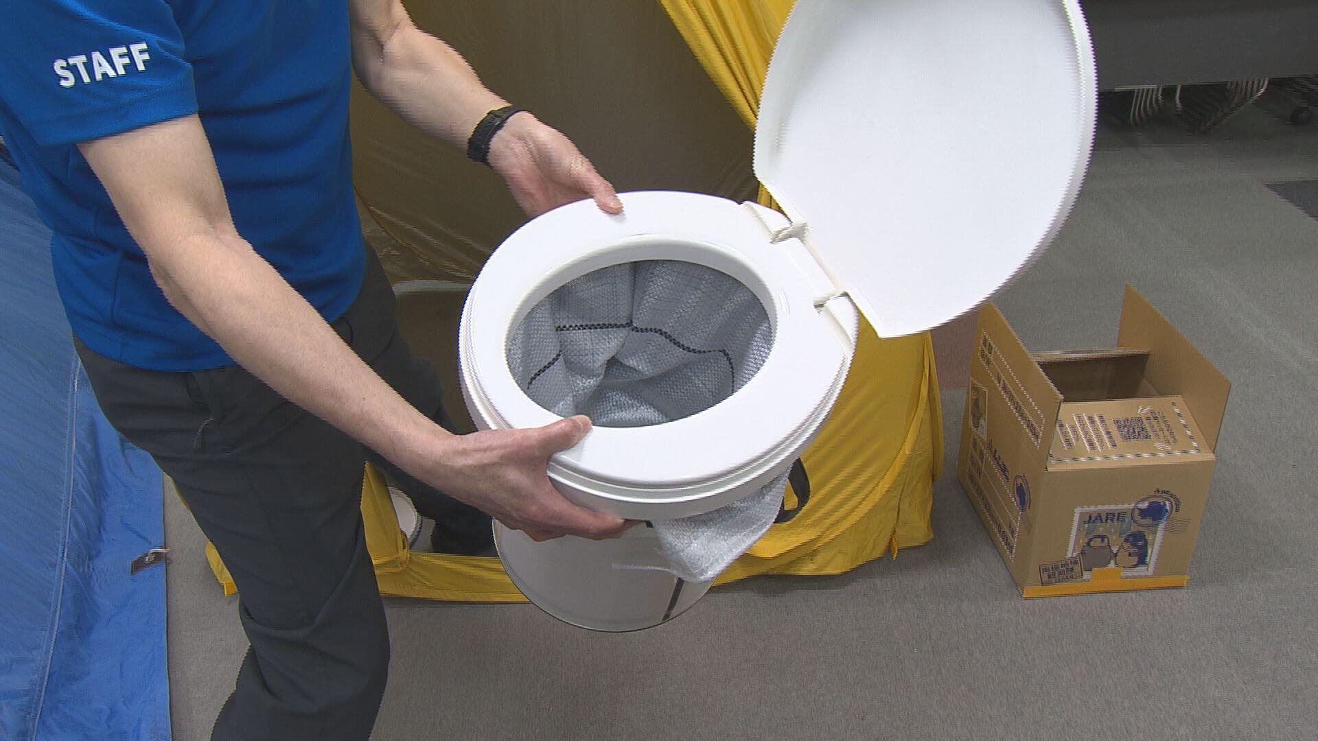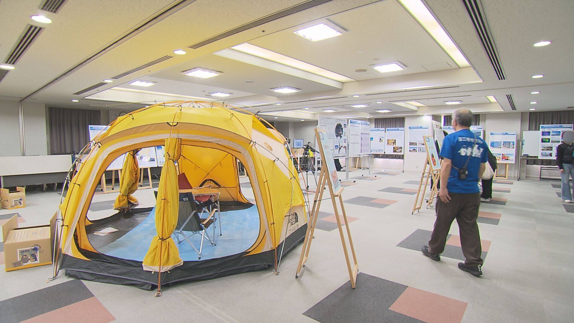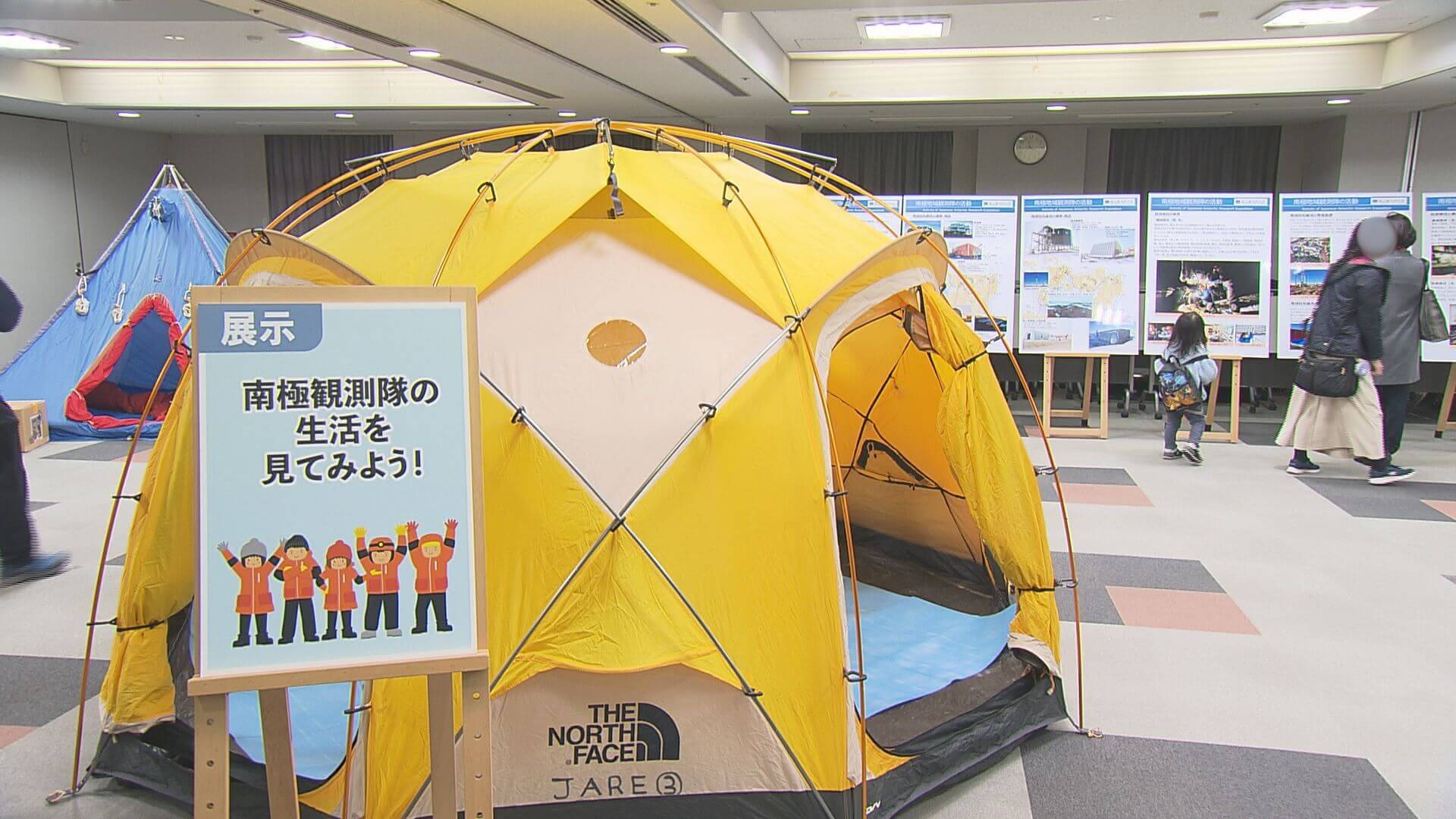 野外で調査を行うチームのテントやトイレ、防寒着などが置かれ、参加者たちは実際に触れながら、南極の生活を感じることができました。