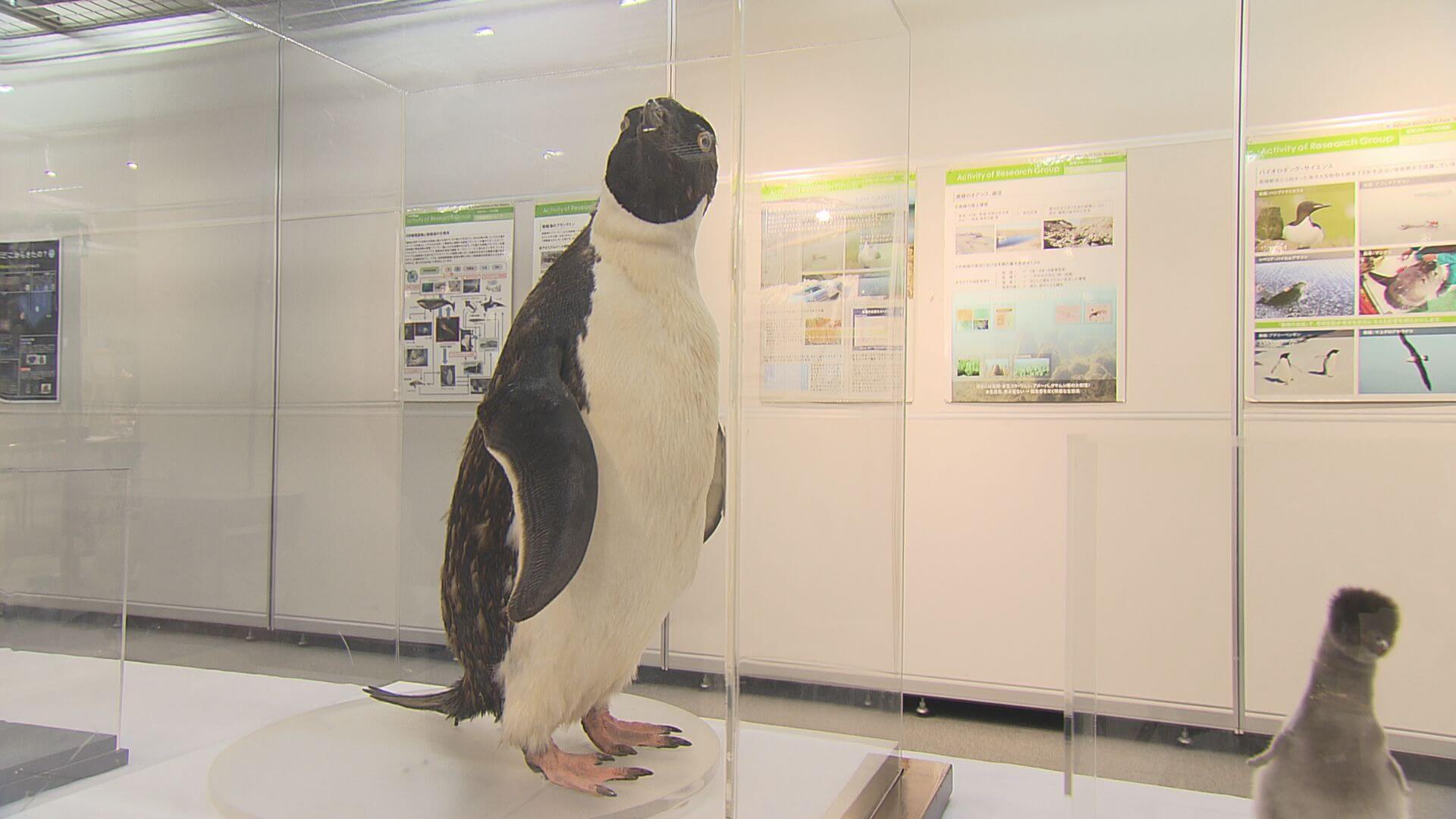 南極の海の生き物のはく製を展示するコーナーには、ペンギンの姿がありました。