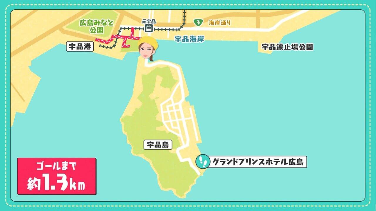 今回から新シリーズがスタート。宇品エリアから「グランドプリンスホテル広島」を目指して歩きます。