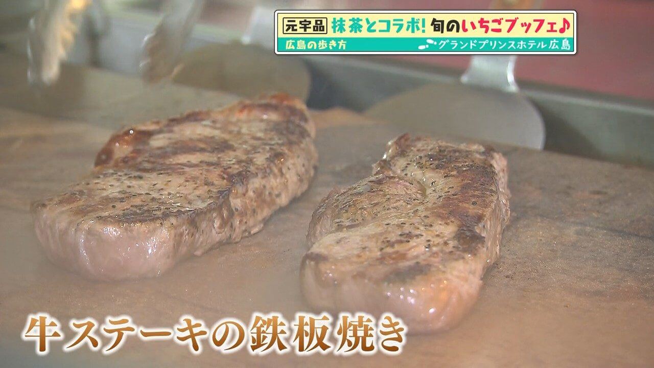 今回のブッフェの目玉は「牛ステーキの鉄板焼き」。