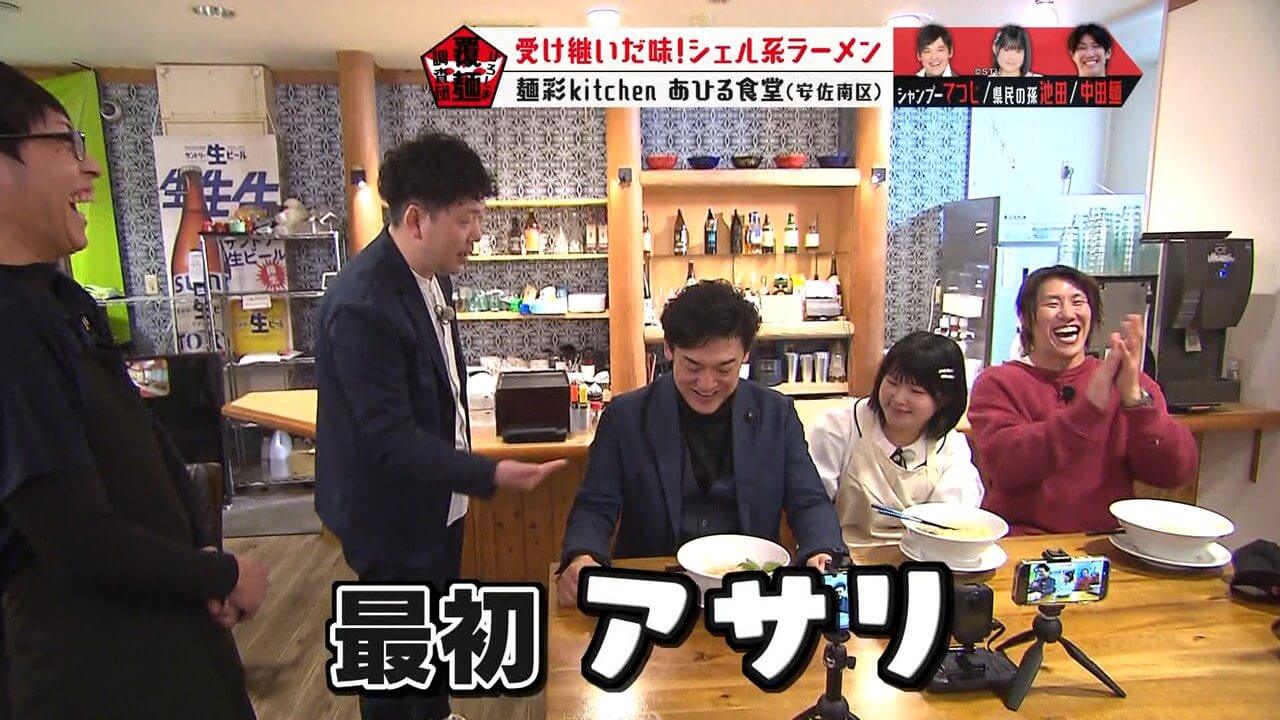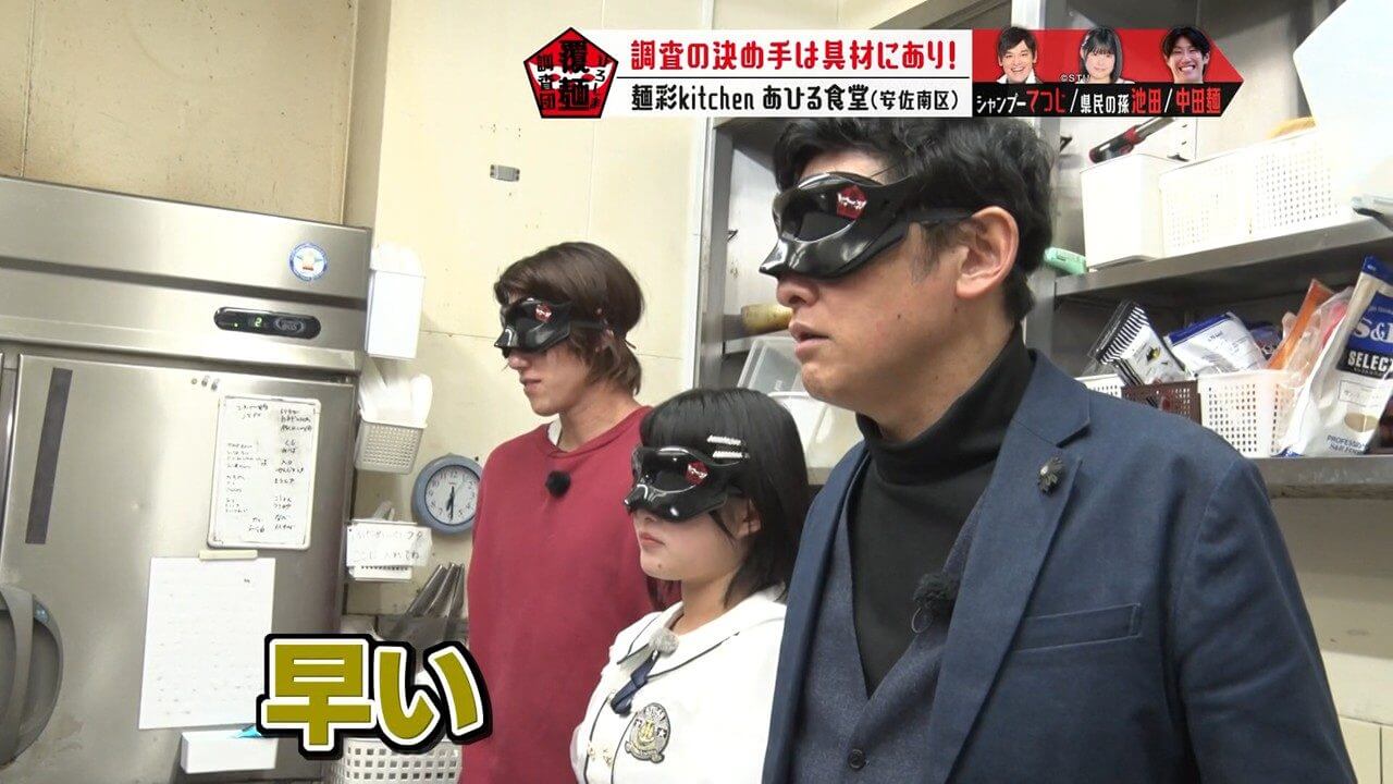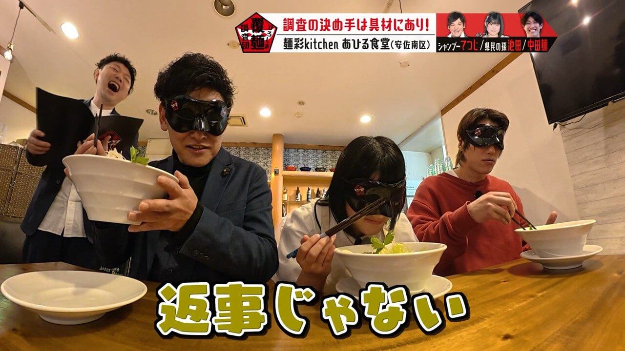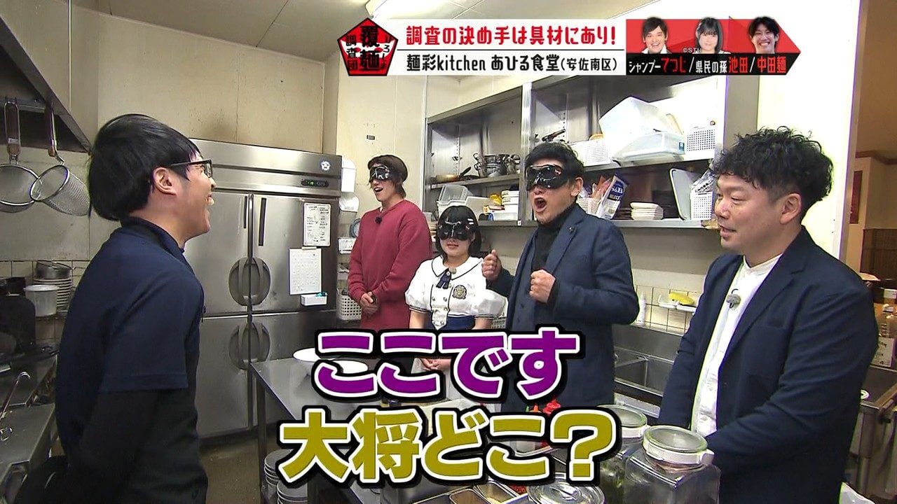 具材や海鮮のうまみの秘密を考察するよう、池ちゃんと中田麺に指示を出すてつじ。