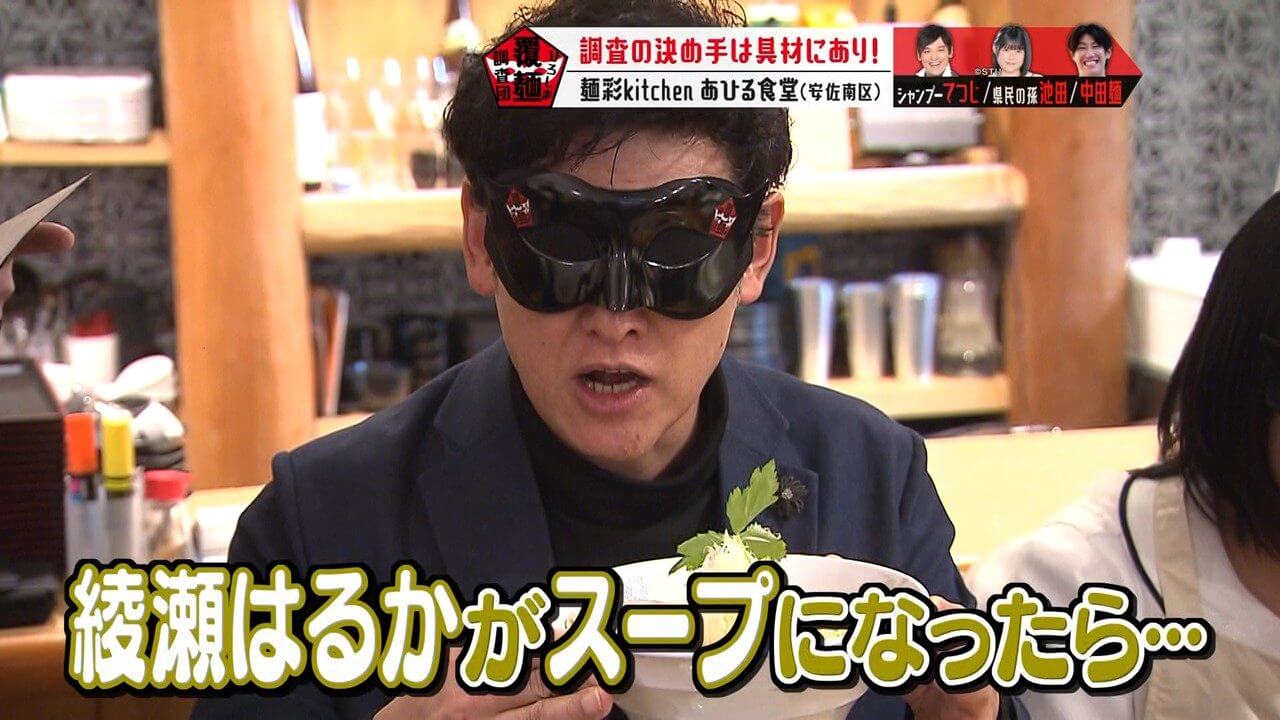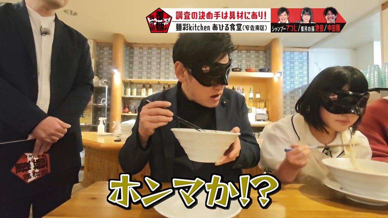 目隠し(通称:覆麺)をして感覚を研ぎ澄まし、至高の一杯を調査します。